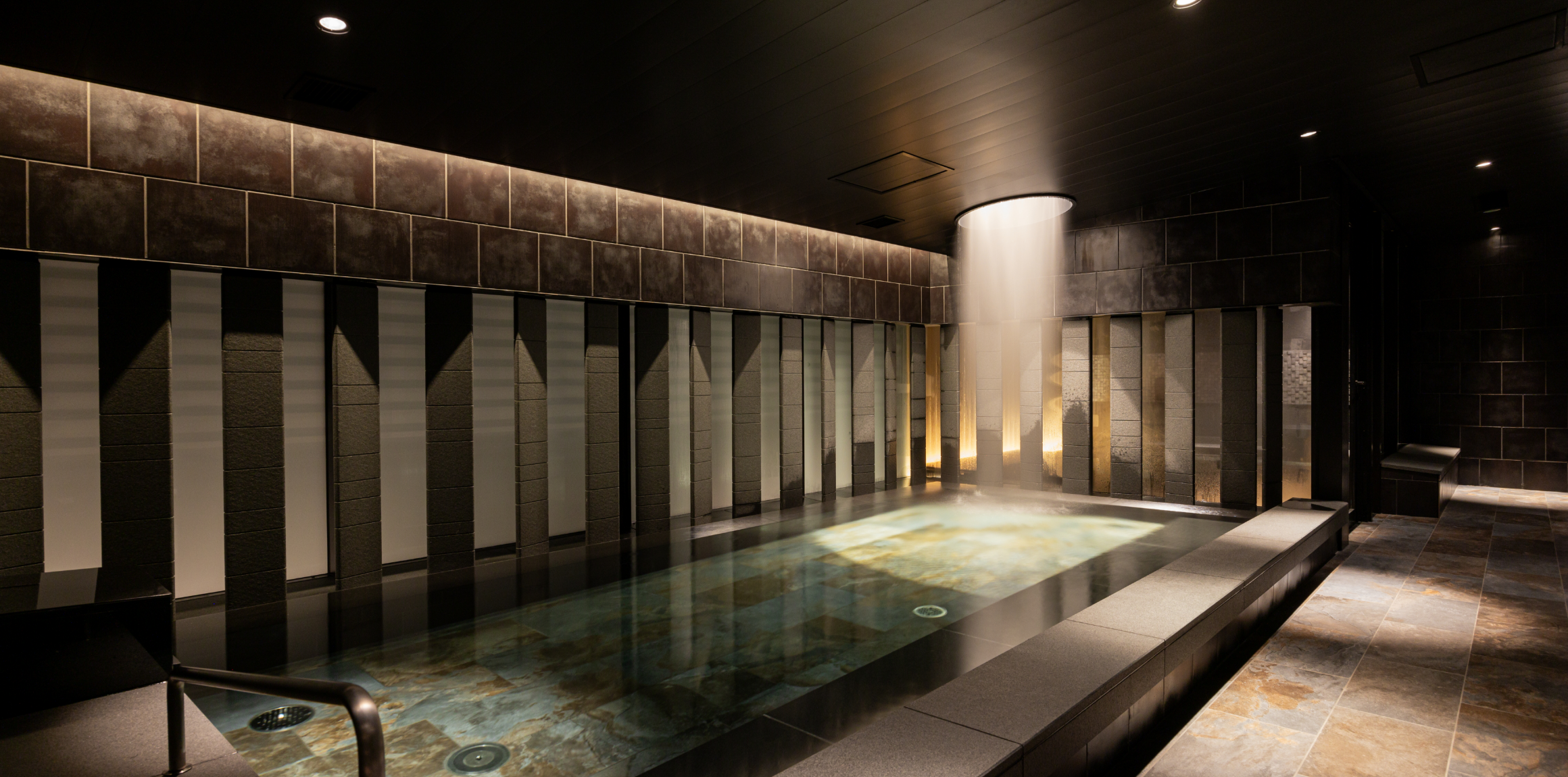 観光やビジネスからホテルに戻ったら、お部屋でのんびりしたり、キャンバスラウンジで過ごしたり、大浴場やサウナ、湯上りラウンジでリフレッシュしたり、その日の気分で自由に楽しめるのもキャンバス福岡中洲の魅力。“九州の渓谷”をイメージした大浴場は、降り注ぐミストシャワーや揺れ動く光が幻想的。