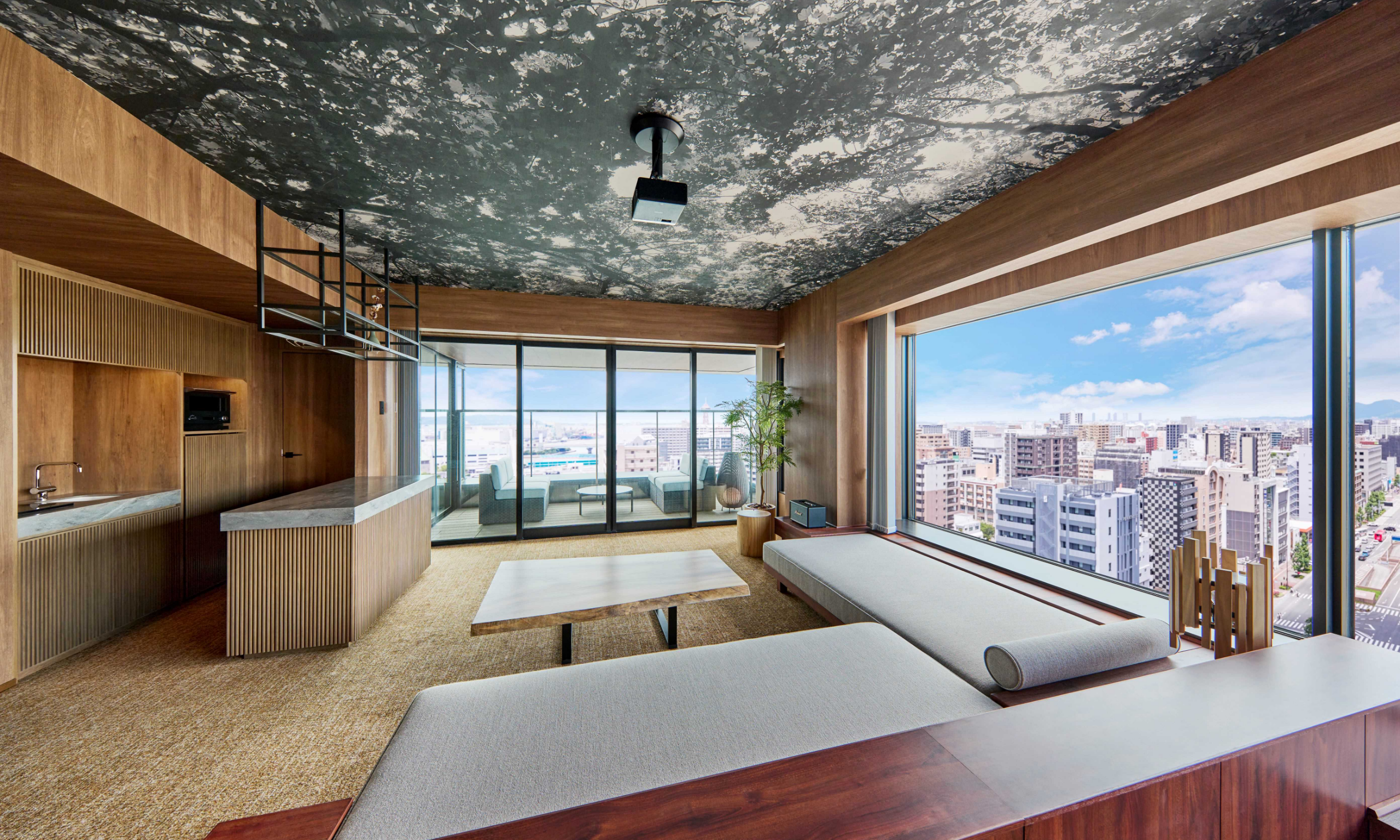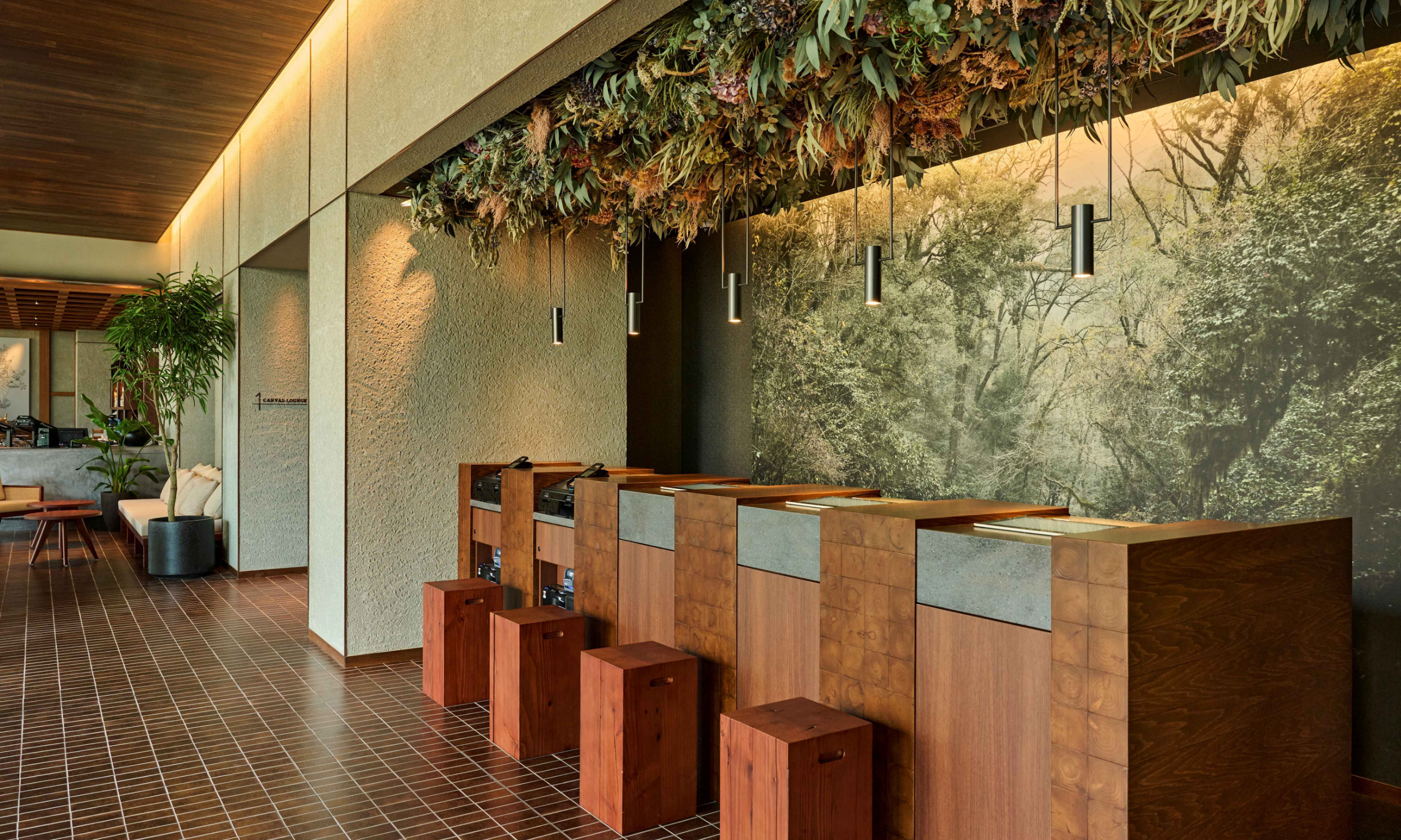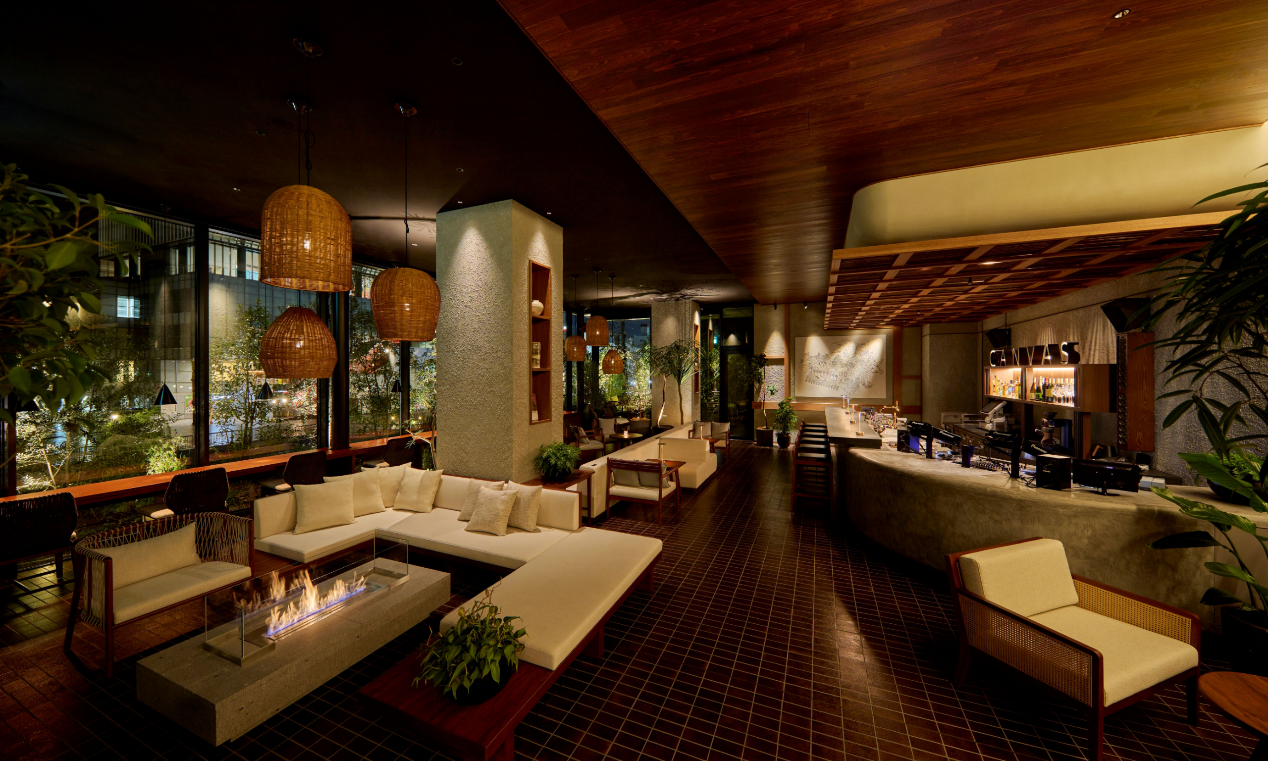 博多川を望むテラス席を併設したキャンバスラウンジ。九州の渓谷をイメージした大浴場にサウナ、Bar KOMOREBI、湯上りラウンジ。さらに“九州の森”をイメージしたルーフトップガーデン……ここが都会であることを忘れる館内施設の数々。キャンバス福岡中洲で心ゆくまでおくつろぎください。
