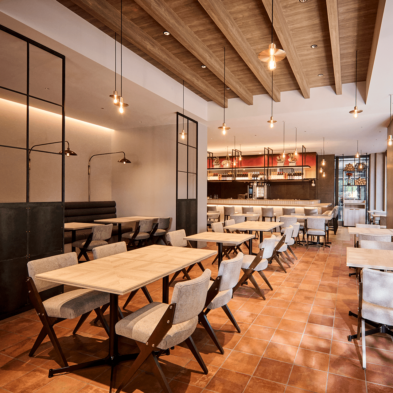 エントランスからBarで出迎え、象徴的な階段をあがったメインフロアにはスタイルの違うBarを配置。Bar Complexで様々な飲食文化との出会いに酔いしれ、BAR Hoppingで終わらない夜を作り出す。