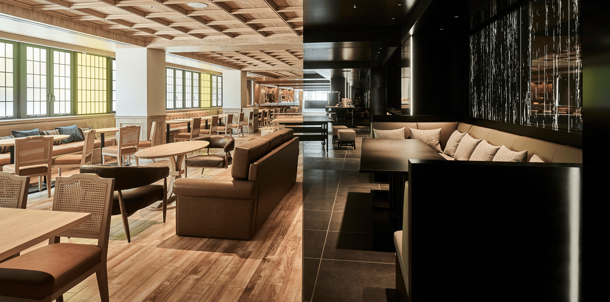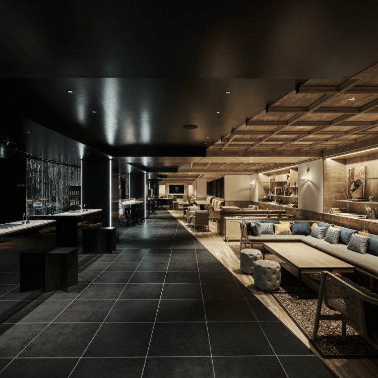 その「コントラスト」を、木と黒のバイカラーデザインで体現した「CANVASラウンジ」は、ゲストが時に仕事をし、時にあそびながら、ホテルのスタッフや地元の人々とつながるソーシャルスペース。
