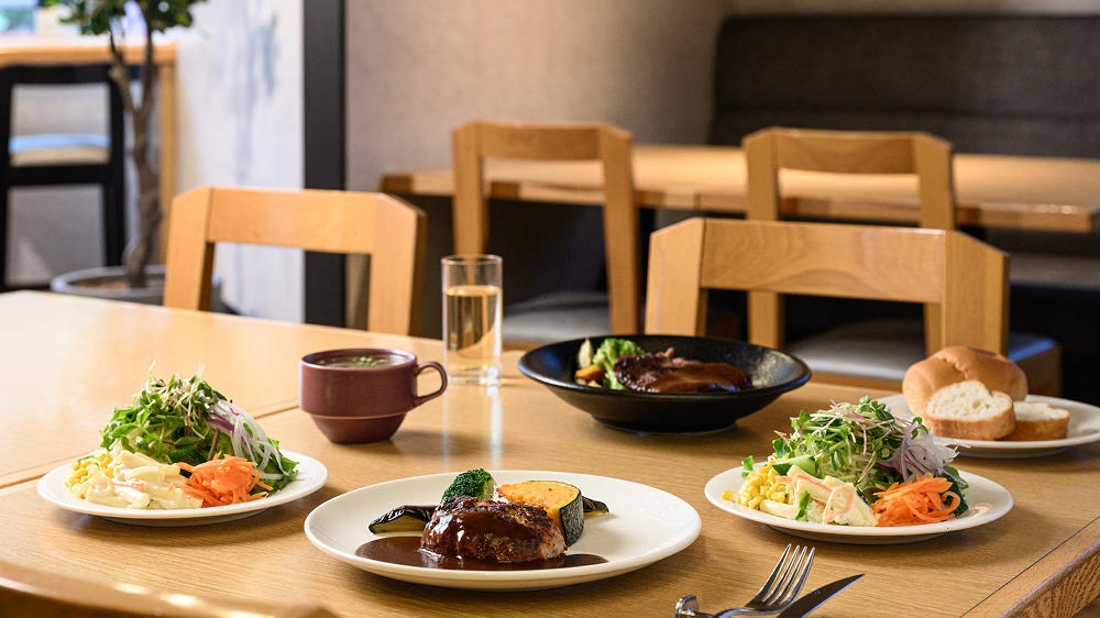 ランチタイムはメインディッシュが選べるセミビュッフェスタイルでお食事をお楽しみください。