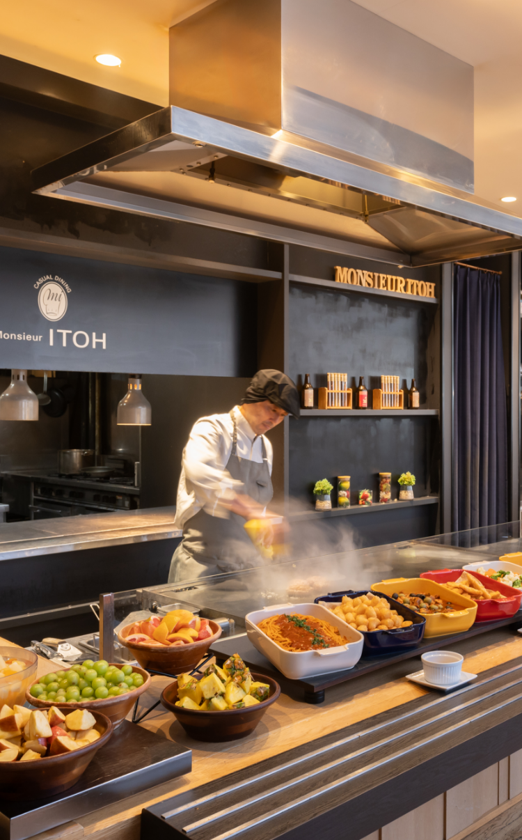 明るく・楽しく・寛げる、オープンキッチンのカジュアルダイニング「ムッシュいとう」。