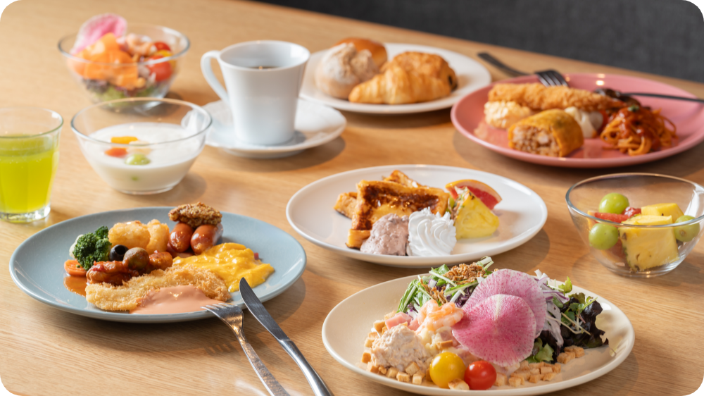 朝食では、ライブ感も楽しい“鉄板”名古屋めしを洋風アレンジで楽しめるフルブッフェをご提供。ランチタイムはメインディッシュが選べるセミビュッフェスタイルのお食事をご提供いたします。カウンター席もあるので、1名様からお気軽にご利用いただけます。