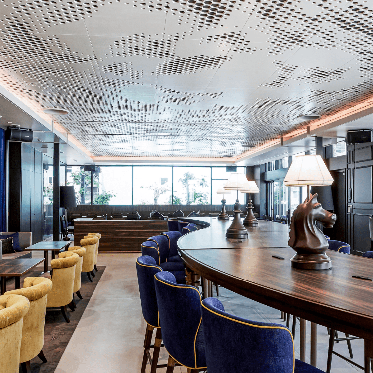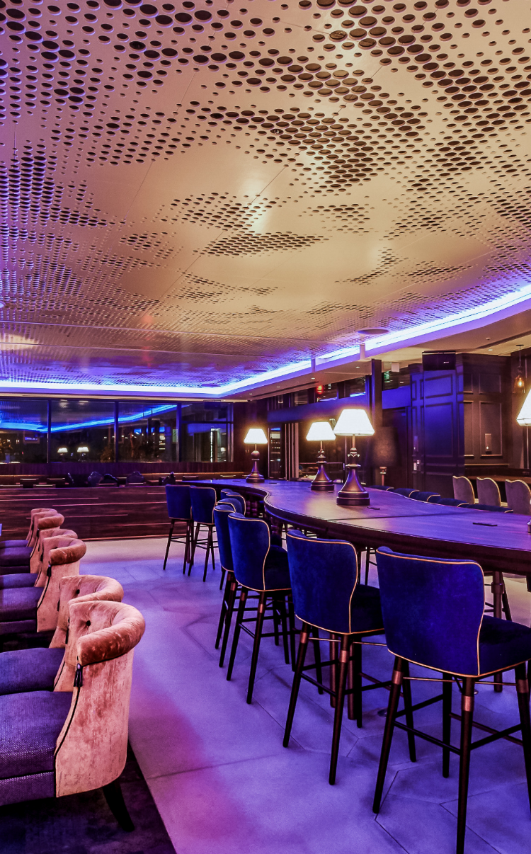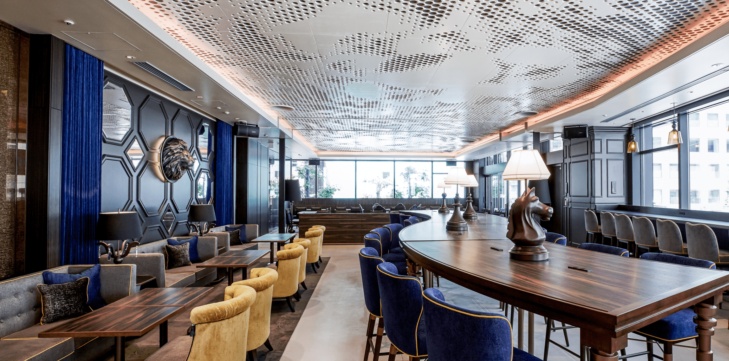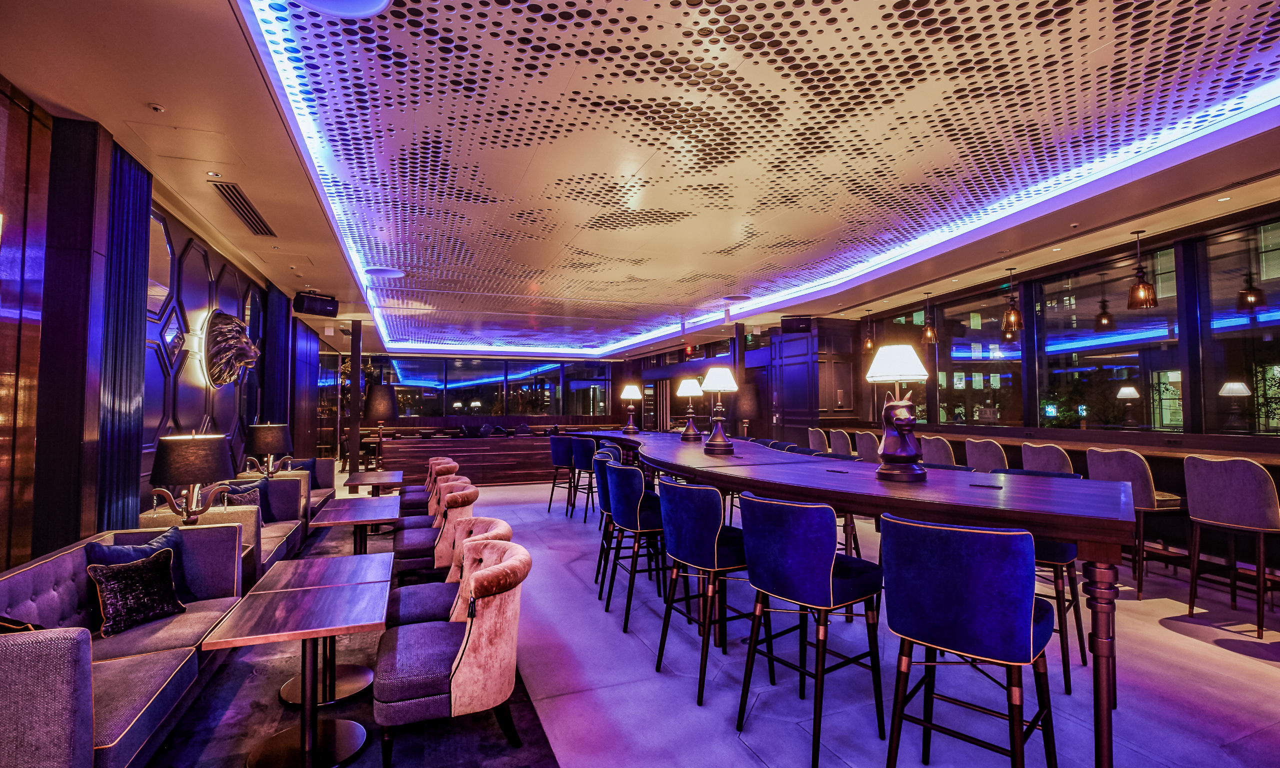 「キャンバス」ラインの特長でもあるキャンバスラウンジ。大阪北浜のラウンジは100席以上、広さ約190m2にテラス席を備えた開放的な空間。ライオンのモチーフと、カラフルなライティングと組み合わせたスタイリッシュなインテリアの、創造性をかき立てるデザイン。ラウンジでは不定期で音楽やワークショップなどのイベントも開催し、キャンバスのキーワードである「FUN」「LOCAL」「CONNECT」を体現します。
