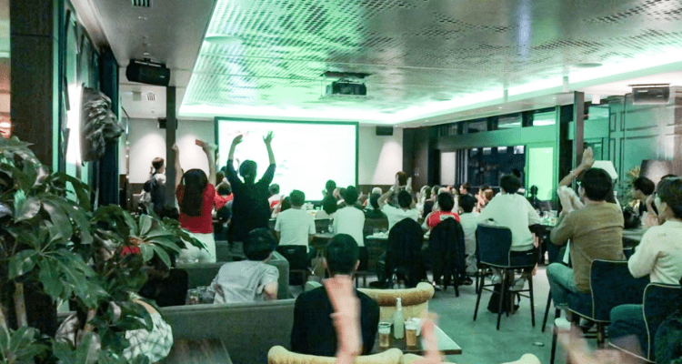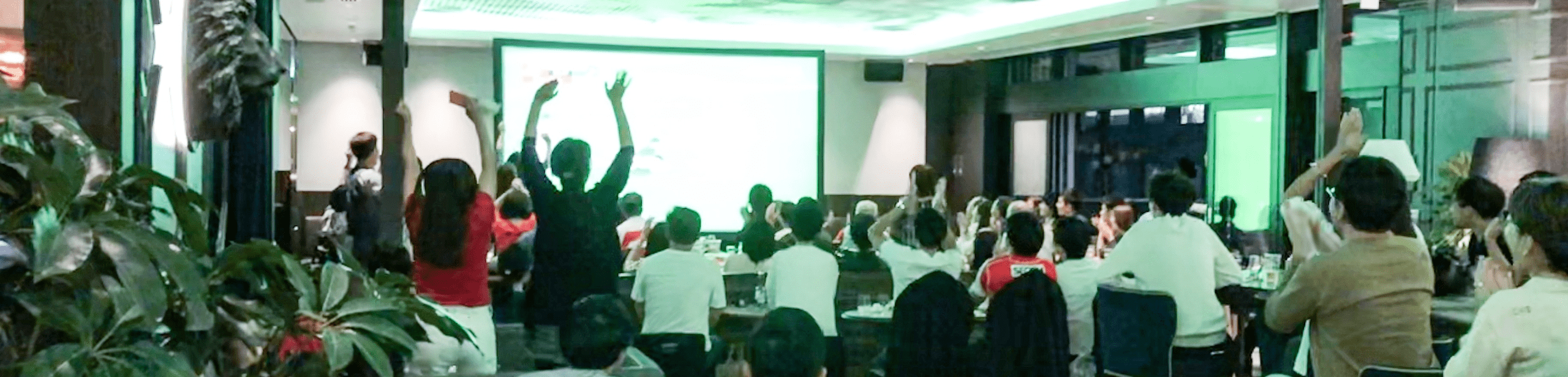 ラウンジ内にある120インチのスクリーンで、さまざまなクリエイターによる作品を放映。