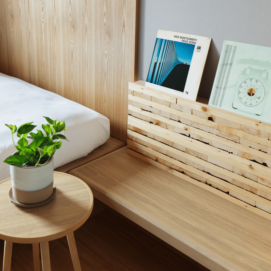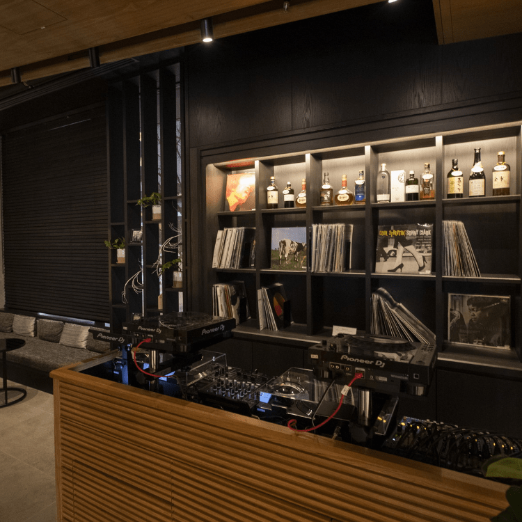 大通公園を見下ろすラウンジでのひとときや、テレビ塔を見上げるルーフトップでの楽しみ。または客室のレコードプレーヤーとオリジナルウッドスピーカー。