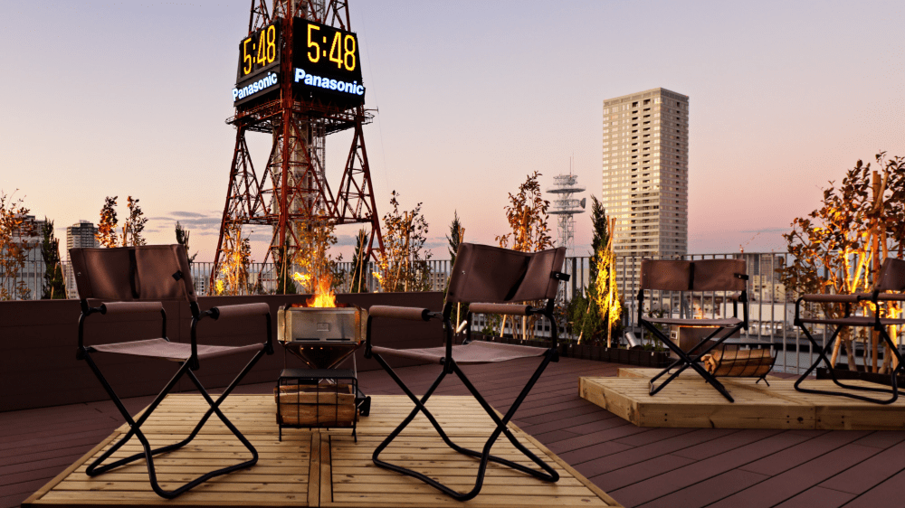 バイオエタノールの炎が揺れるファイヤーピット、北海道産プロダクトや食材のマルシェ、地元DJ・VJによるイベントなど様々な体験を通して北海道を体感。