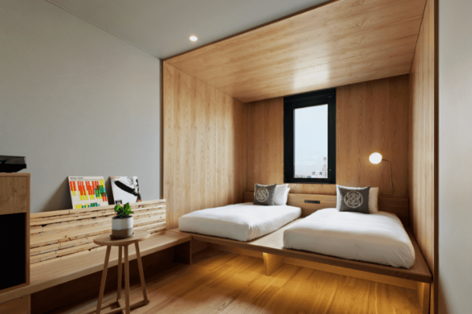 JAZZの街としても有名である札幌をお楽しみいただけるよう、全ての客室にレコードプレーヤー、木製のスピーカーを設置、また、アメニティの一部(歯ブラシ、シェイバー、ヘアブラシ等)は、籾殻を原料にした環境にやさしいアイテムをご用意しております。