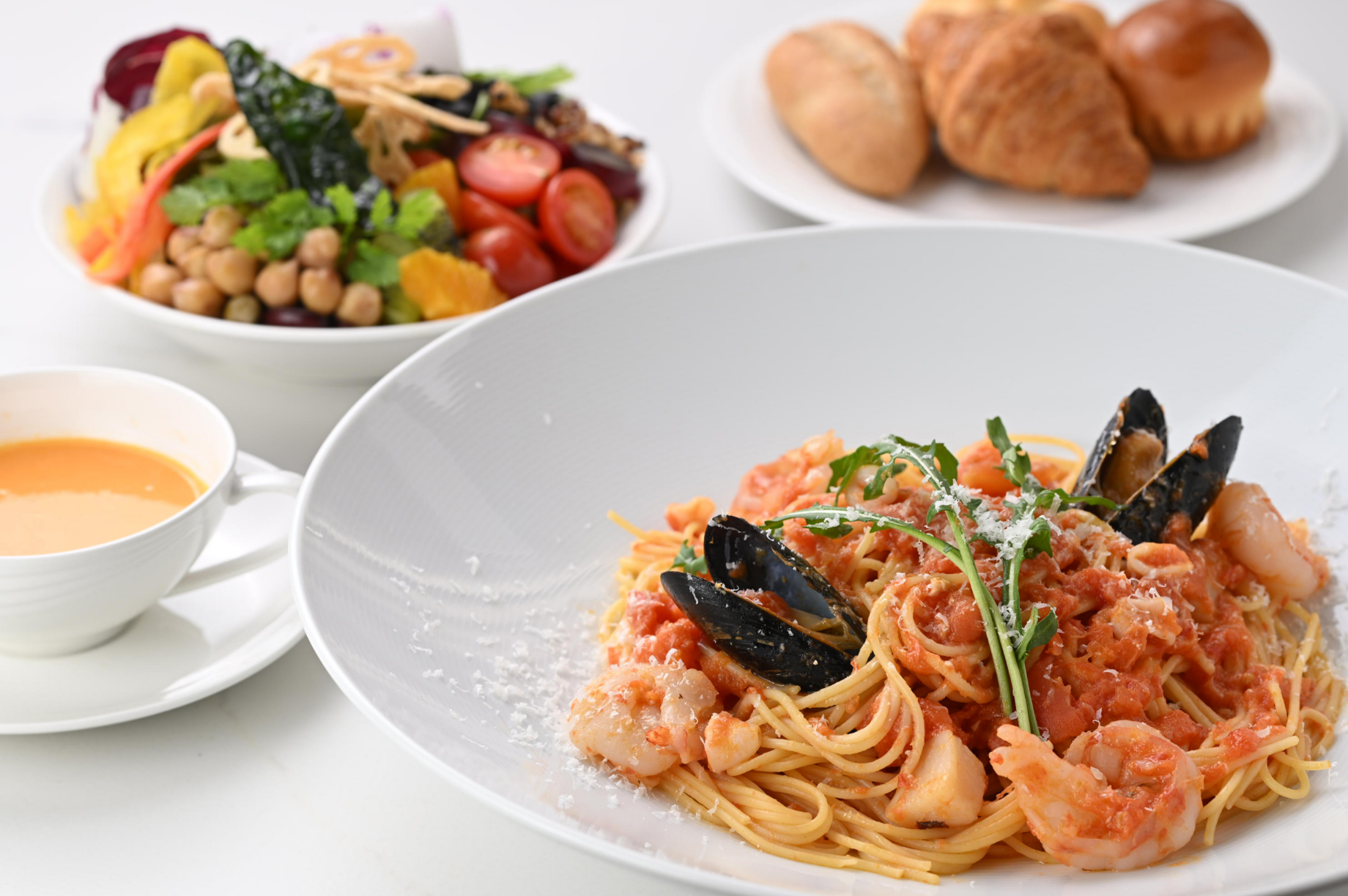 ランチは好きなソースや具材をカスタマイズできるパスタなど心の充足感を、
