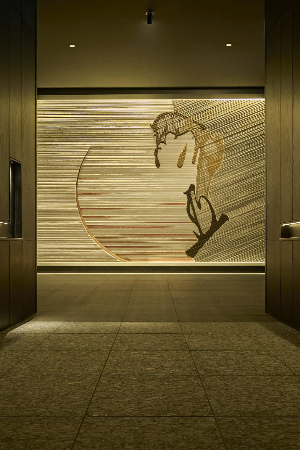 岐阜高山の左官職人、挾土秀平氏によるまるで壁画のような左官壁がゲストを迎える「立礼茶室」は、この地に根づく茶の湯文化に思いを馳せる、中部ならではのおもてなし空間です。