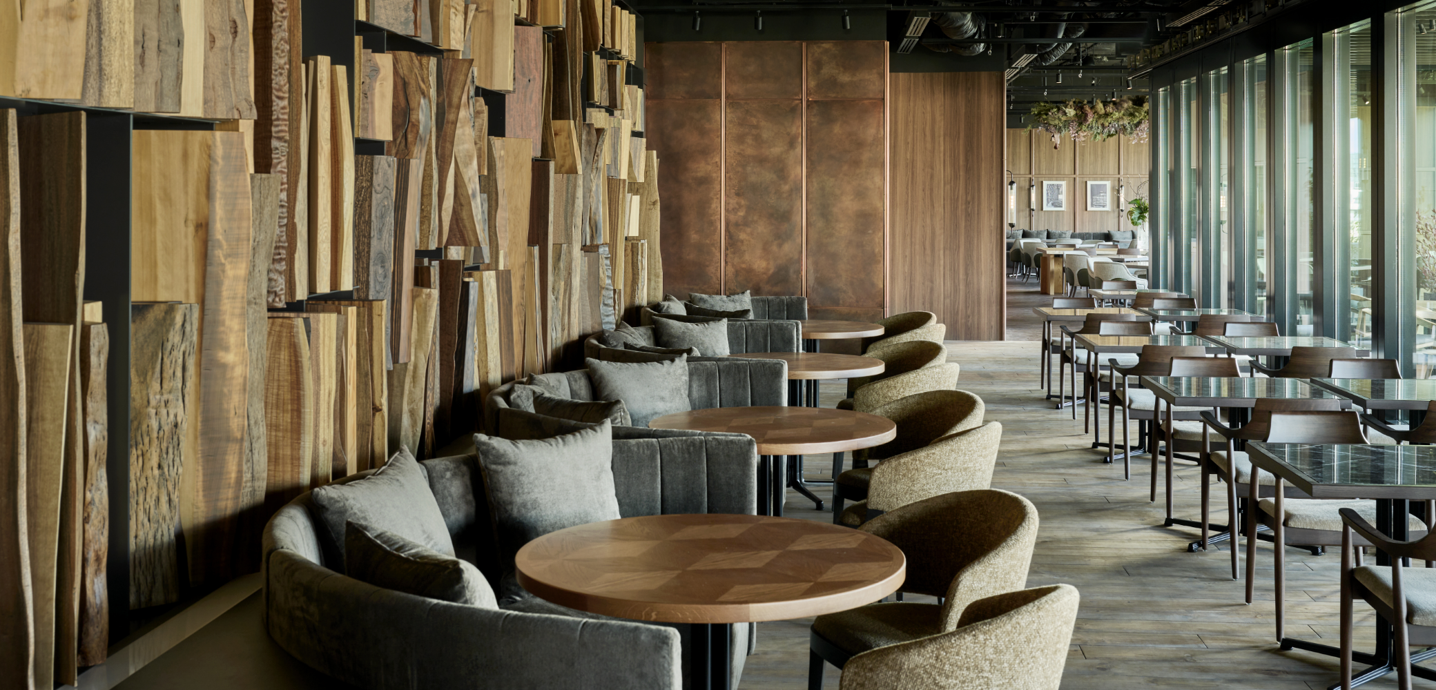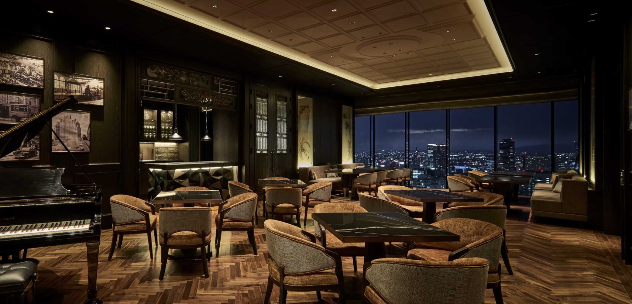 時間で表情を変える栄の景色を一望できるルーフトップテラスを擁するダイニング。