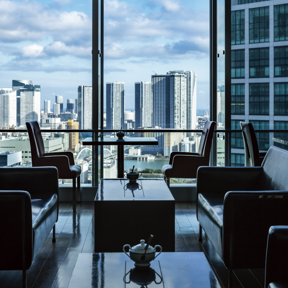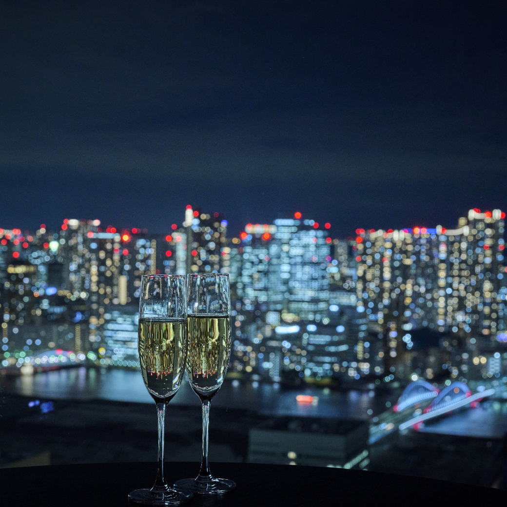 地上約100mから東京ウォーターフロンエリアの煌めく摩天楼を眺めながらゆったりと都会ならではの癒しとともに、イブニングハイティーをお楽しみください。