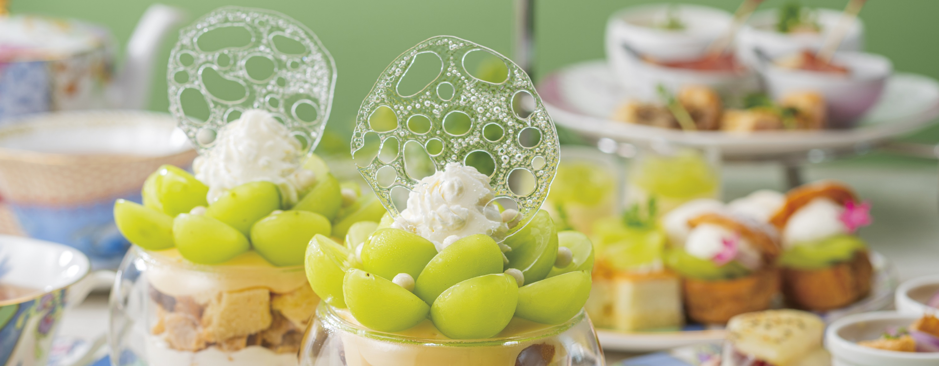 お時間帯に合わせてお召し上がりいただけるように、午後の明るい陽射しの中で楽しめる人気のアフタヌーンティーと、