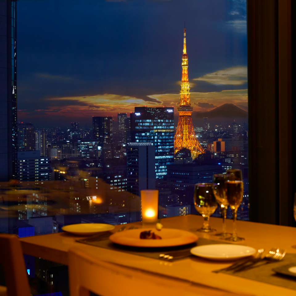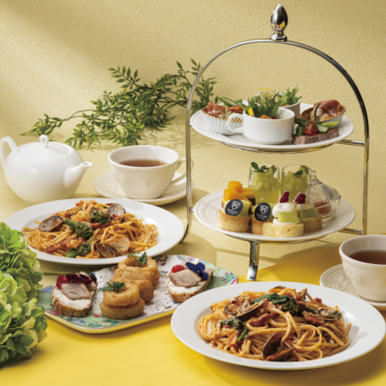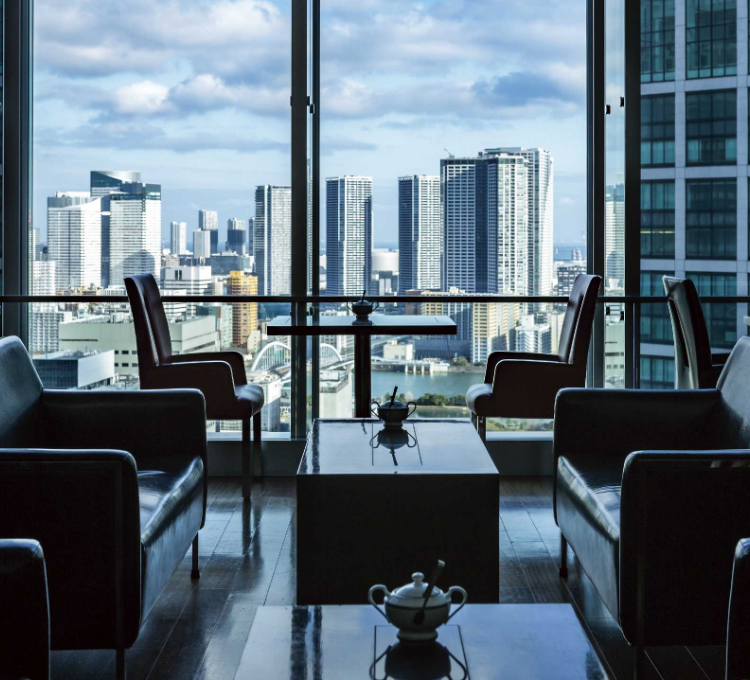 地上約100mの高層階から浜離宮恩賜庭園や東京タワーを眺めながらスイスの高級ティーブランド「SIROCCO」をウエッジウッドの茶器で味わうアフタヌーンティーと、東京ウォーターフロントエリアの煌めく夜景を眺めながらお召し上がりいただくイブニングハイティーがございます。お時間帯に合わせて、お楽しみください。