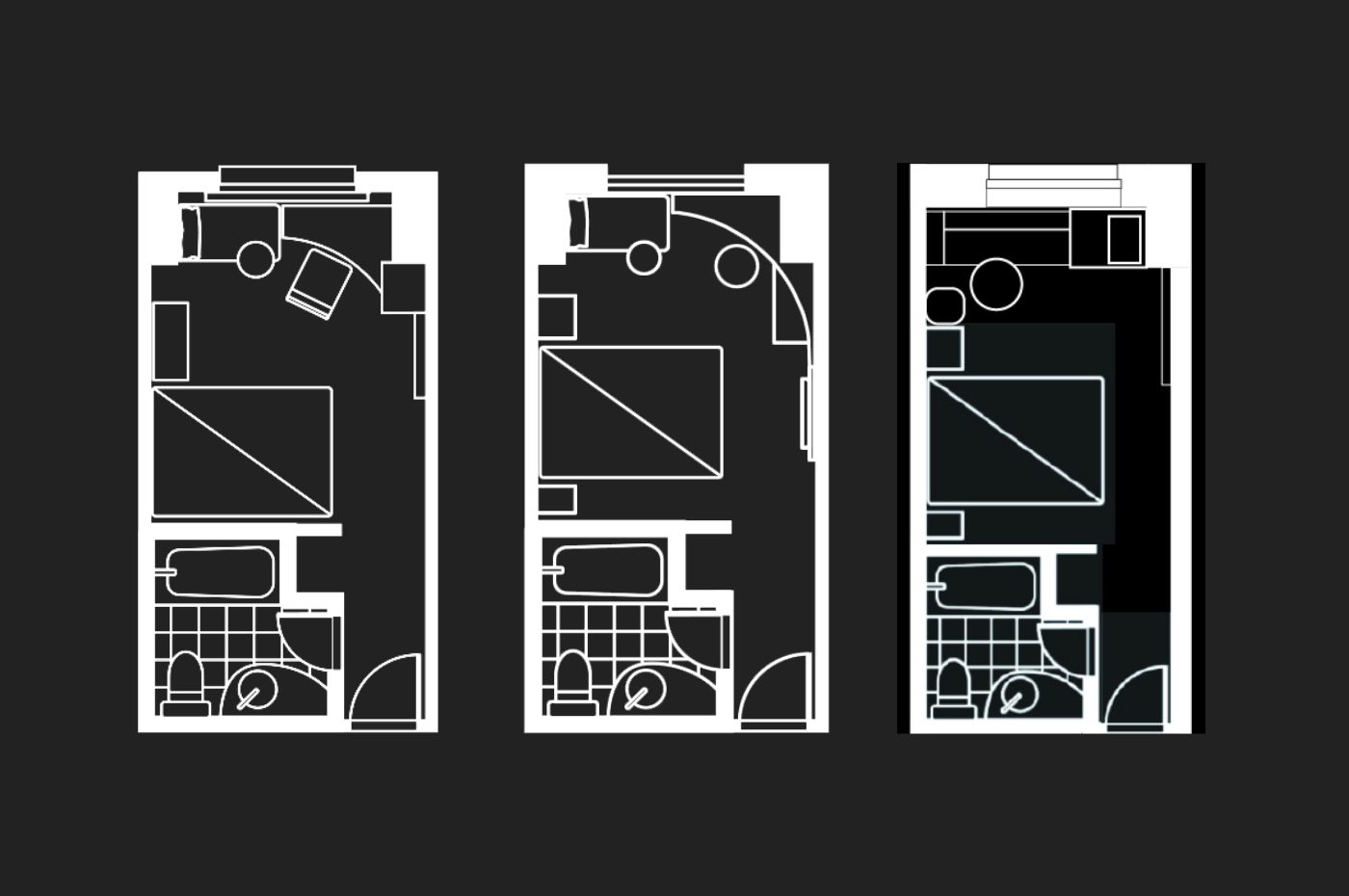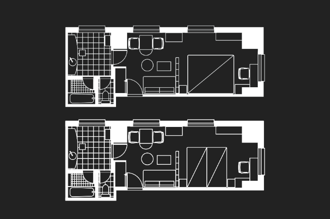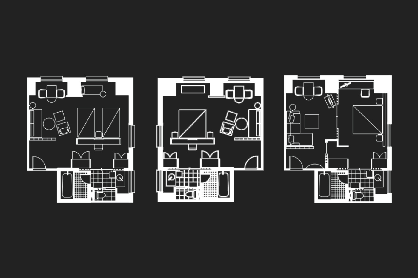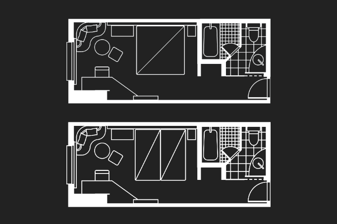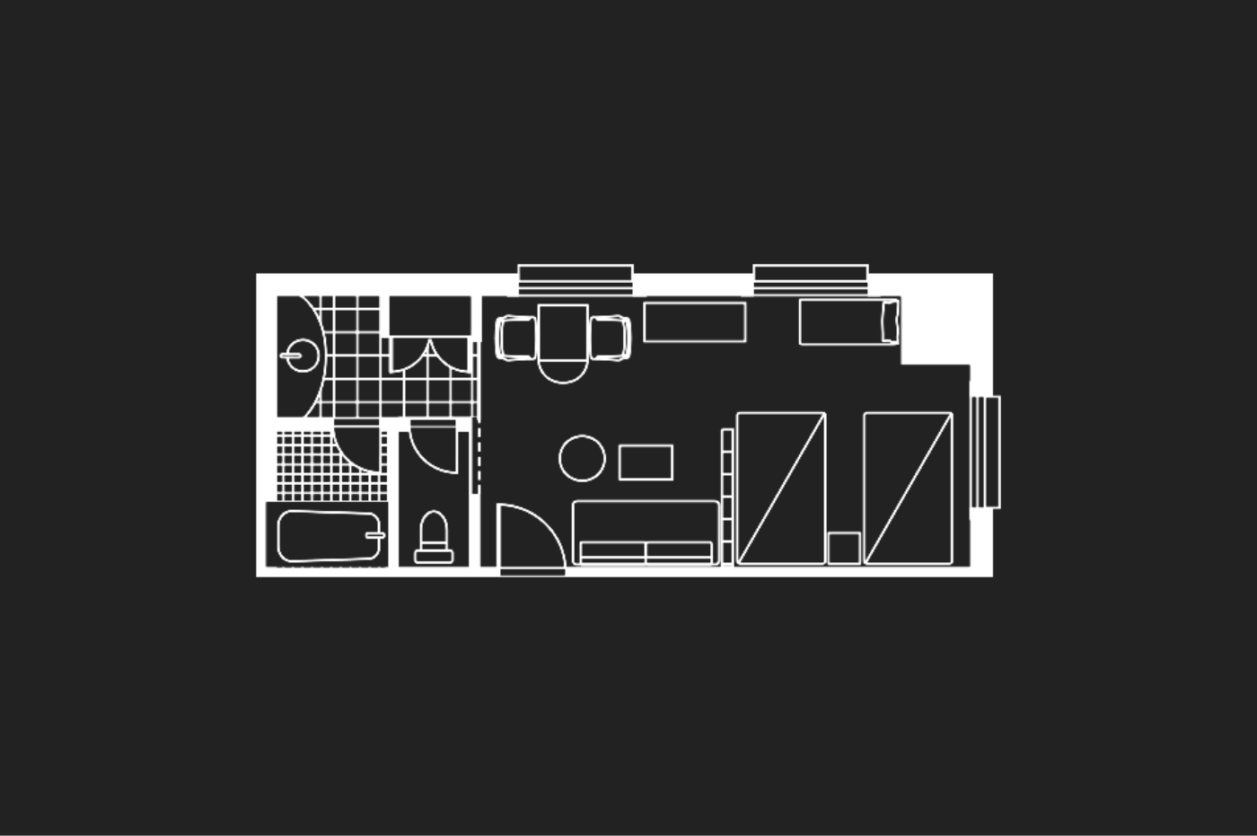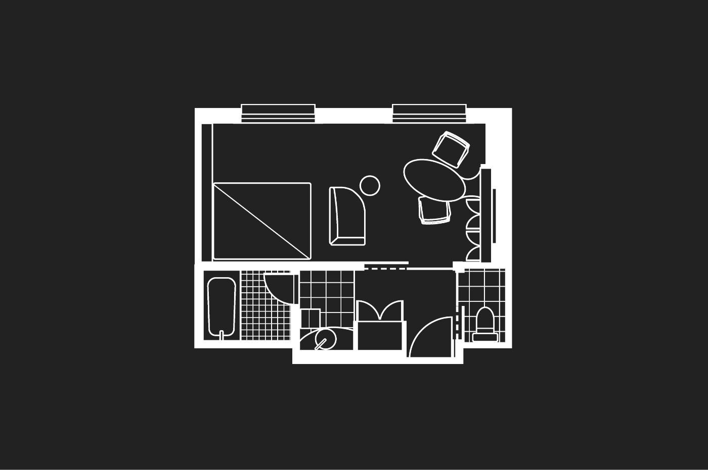 2面の窓が開放感を生み、記念日でのご滞在などに特別な時間をゆっくりとお過ごしいただける間取りです。
