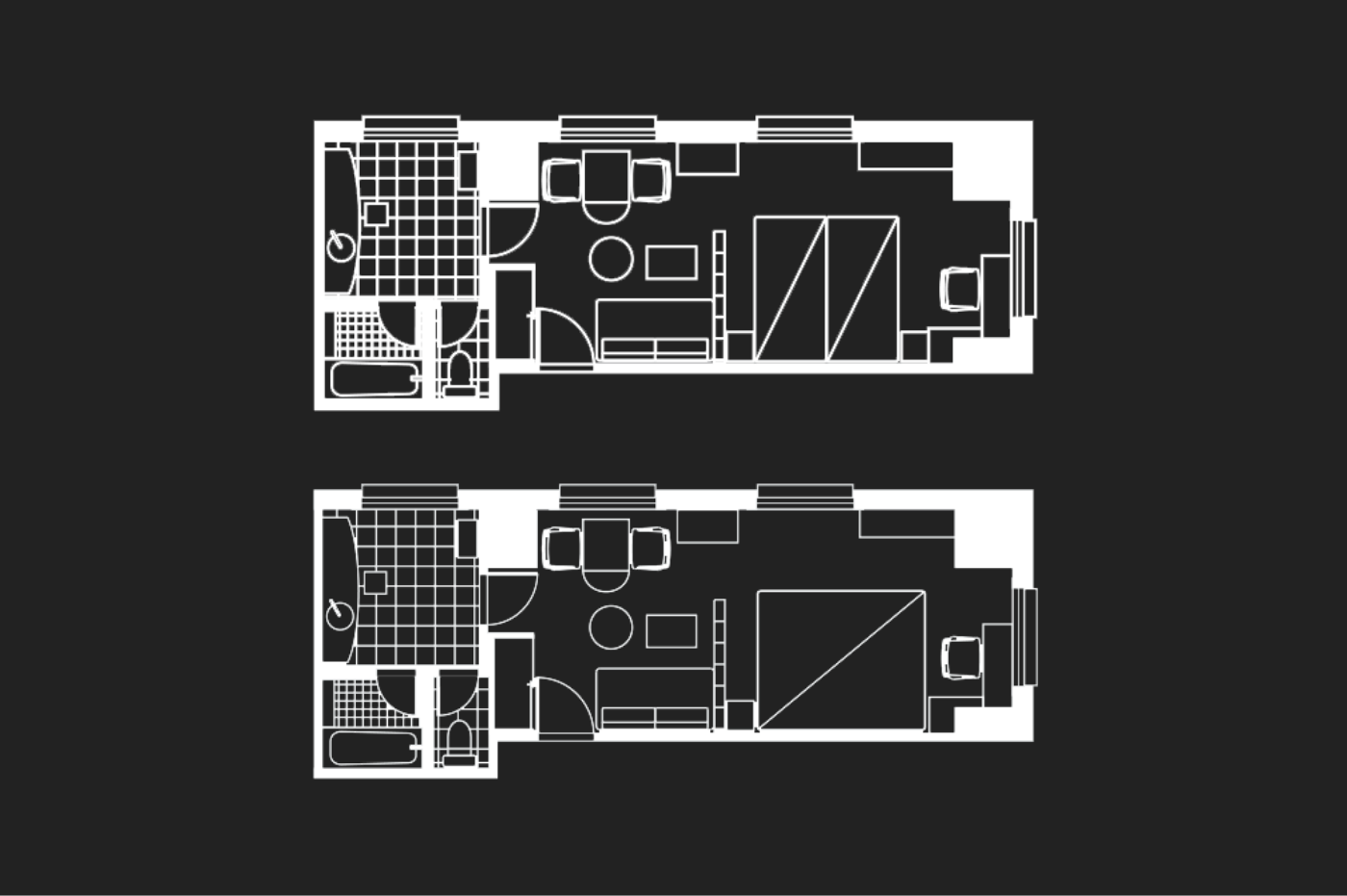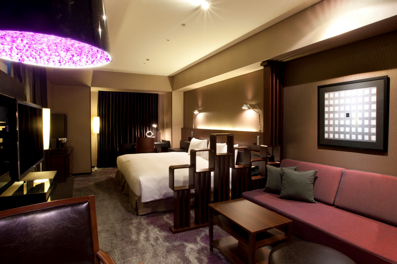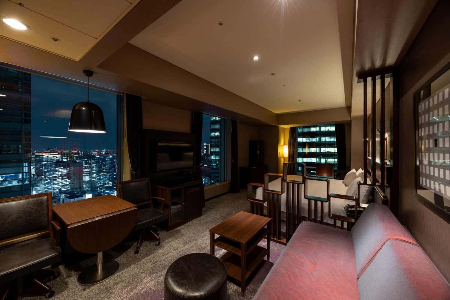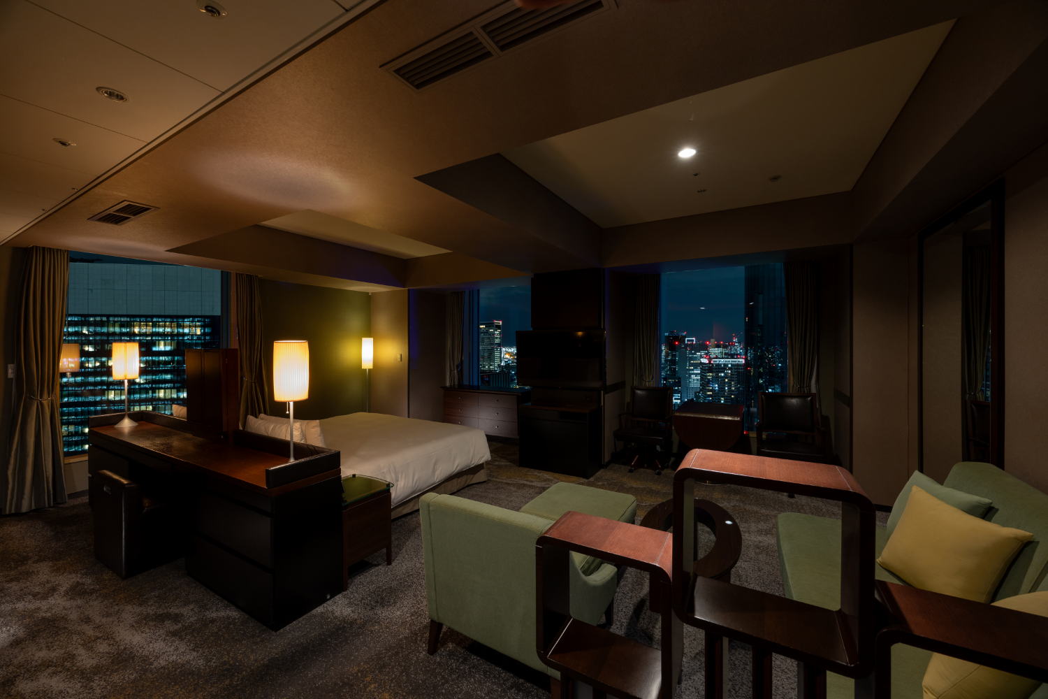 2面の窓が開放感を生み、記念日でのご滞在などに特別な時間をゆっくりとお過ごしいただける間取りです。