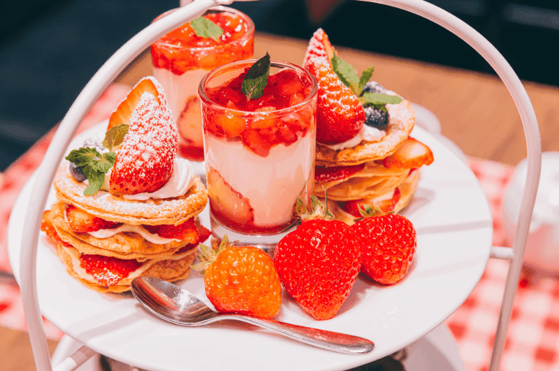 実は、ルボンヴィーヴルのおすすめは朝食だけではない。季節の果実をテーマにしたアフタヌーンティーも人気で、12〜4月のシーズンは「あまおう苺のアフタヌーンティー2023」を目当てに来店する人も多いみたい。