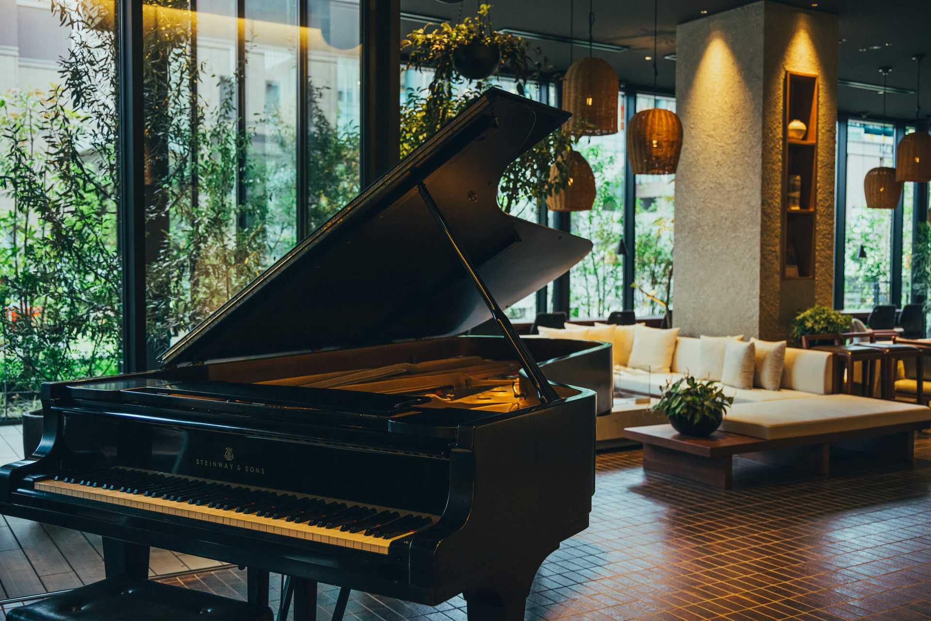 - ホテルの象徴的な場所であるCANVASラウンジに旧明治安田生命福岡ビルのホールで使用されていたピアノをお借りして設置しました。そこで地元アーティストの方々による音楽イベントを行なっています。
