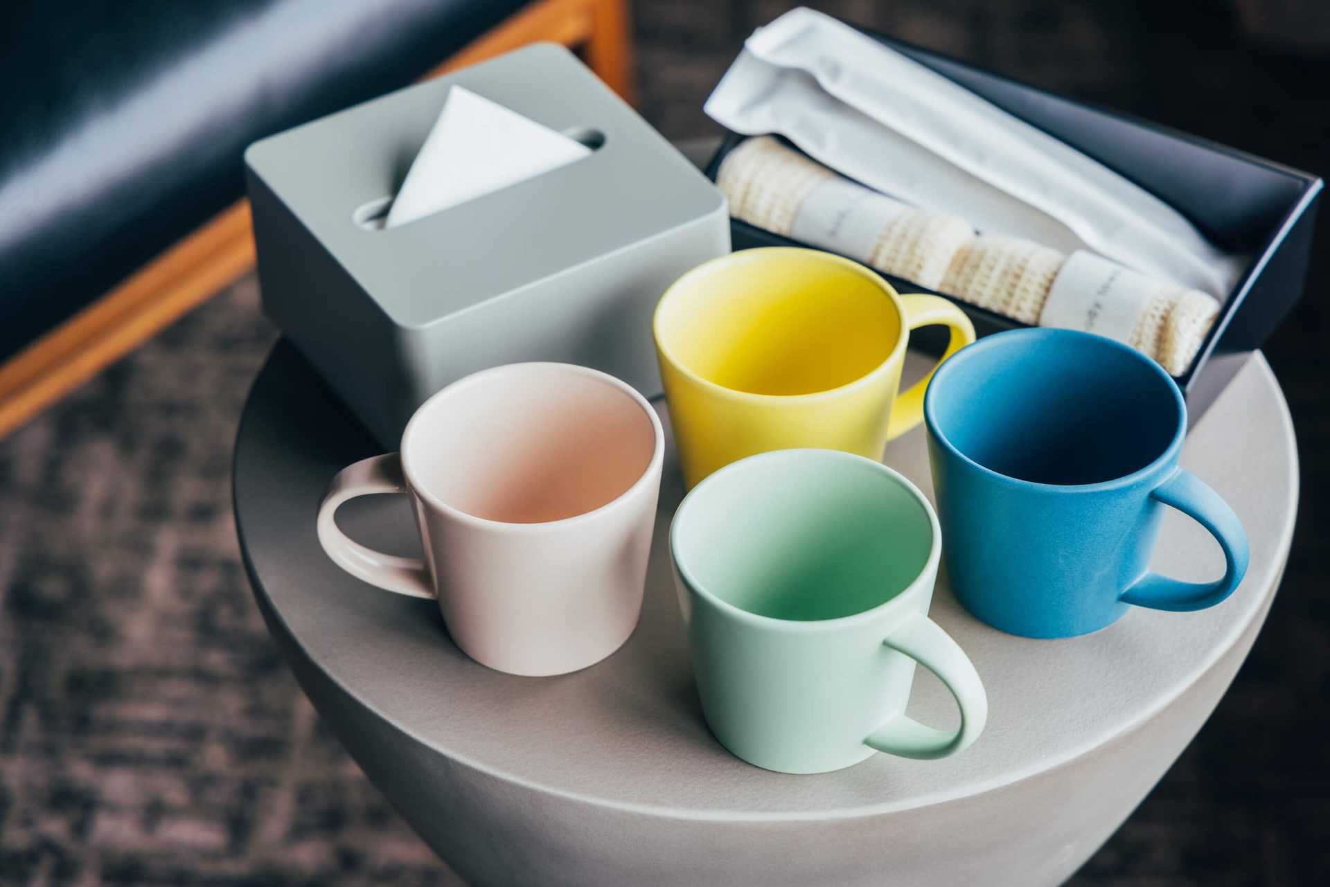 - 学校やレストランから回収した不要食器を粉砕した素材を混ぜ込んだマグカップや、製造工程で出てくるチップを再利用したティッシュボックスやトレーなど、客室内の細かなところにもSDGsのエッセンスを散りばめています。