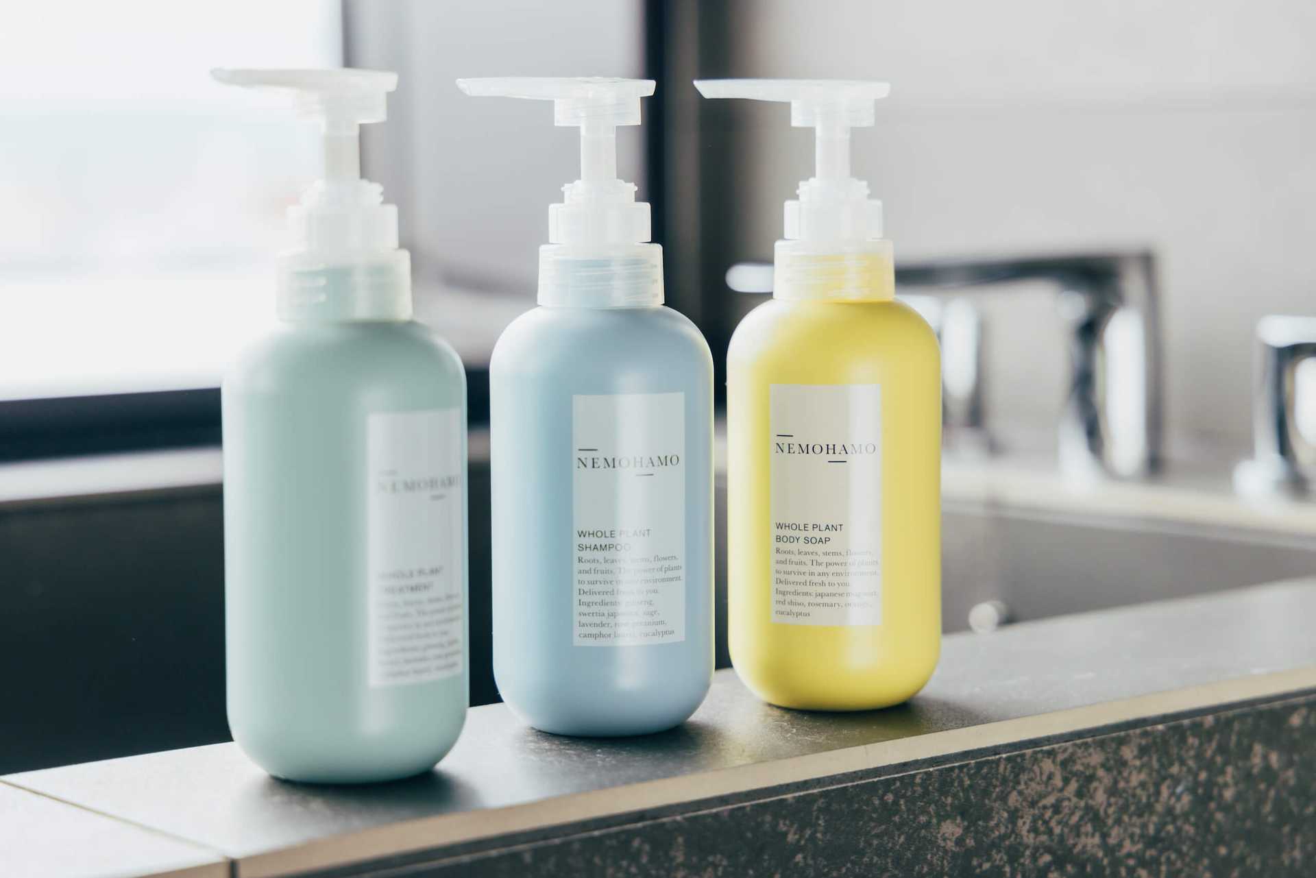 - 客室はお客様が一番リラックスしてコンセプトも感じていただけるところだと思うので、どんな体験を提供できるのかというところにこだわりました。今回最上階の客室には、福岡県遠賀郡芦屋町の里山で丁寧に育てられた天然素材を使用しているブランド「NEMOHAMO」のシャンプー、トリートメント、ボディソープを採用しています。