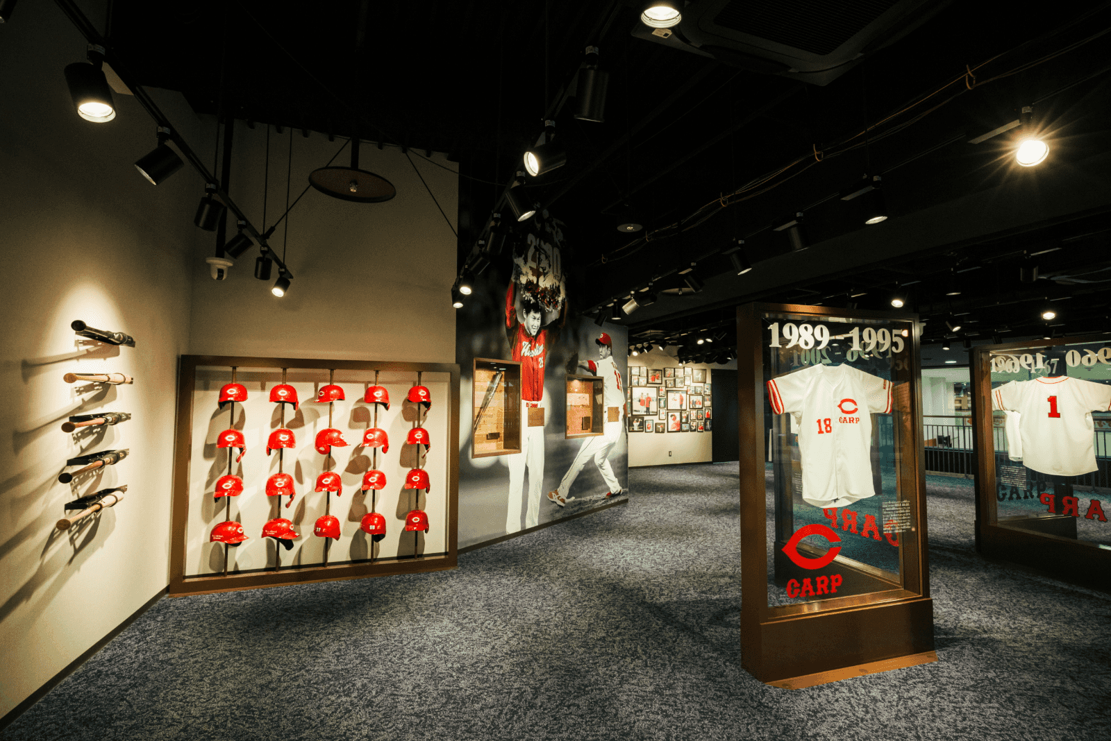 ちなみに、ショップ2F には2023年3月にオープンしたカープギャラリーも。リーグ優勝・日本一のトロフィーや歴代の球団ユニフォーム、現役選手が使用していた用具などここでしかみられない貴重な品々が展示されている。