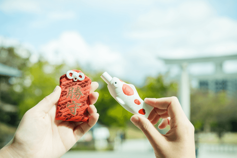鯉が泳いでいるようなキュートなおみくじは、持ち帰って飾るもよし。お守りは勝守以外にも種類が豊富