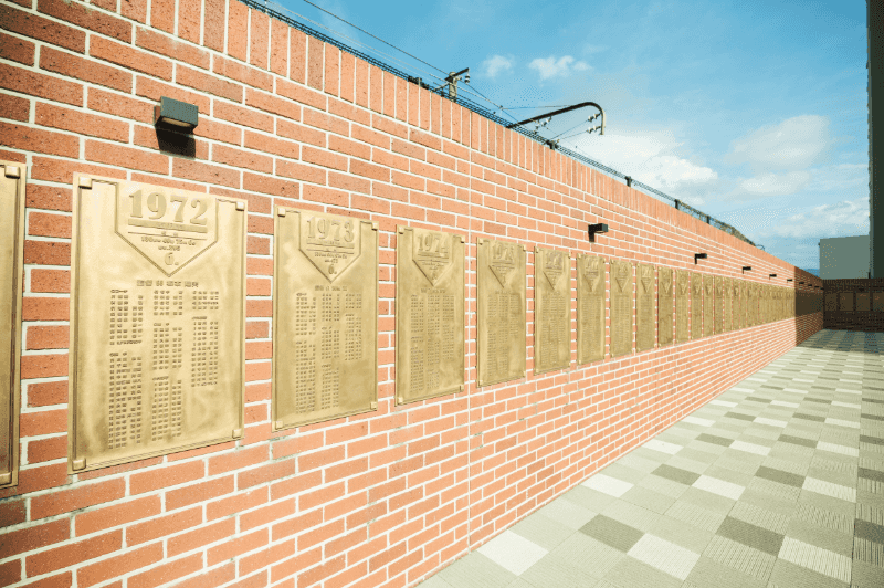 境内には、本殿に向かって左側に双鯉の像、右側に昇鯉の像が鎮座している。カープは日本語で「鯉」のこと。聞いた話によると広島城の別名「鯉城(りじょう)」から名づけられた球団名とも言われているらしく、なにかと推しチームと縁が深い!