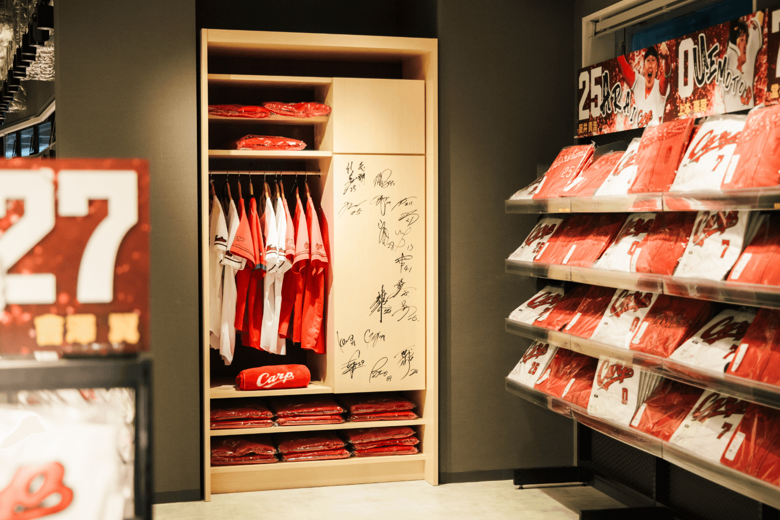 ショップ内の一角には、選手直筆のサインも。選手たちのロッカーを模したディスプレイとともに写真に収めておきたい