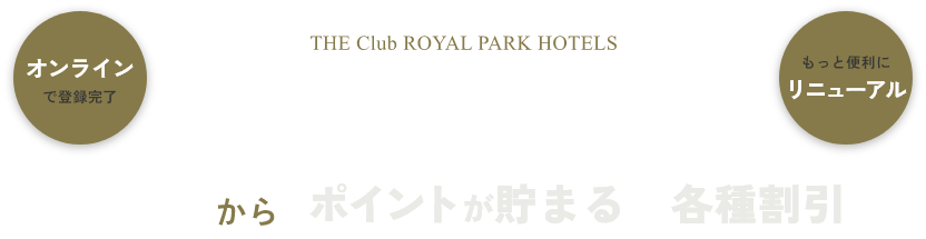 ザ クラブ・ロイヤルパークホテルズは、全国のロイヤルパークホテルズでご利用いただける入会金・年会費無料の会員制度です。