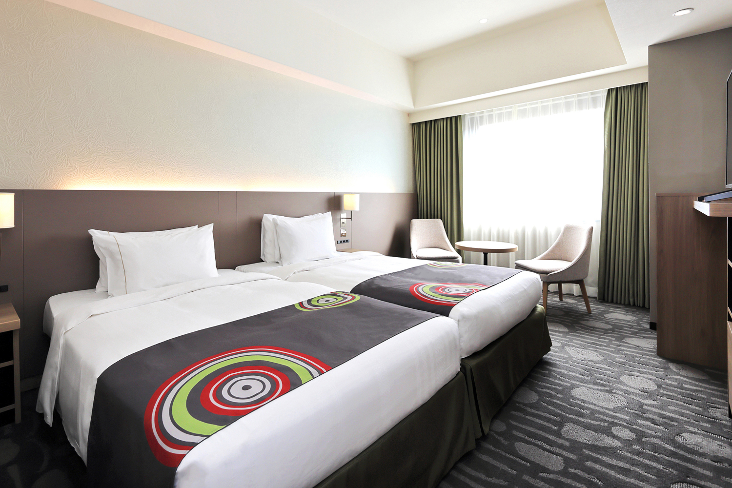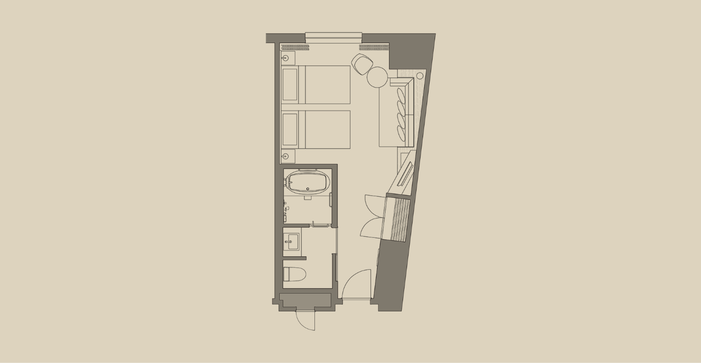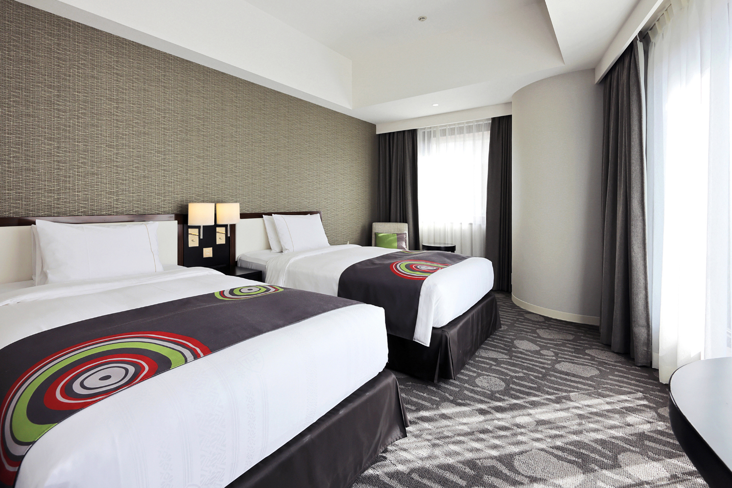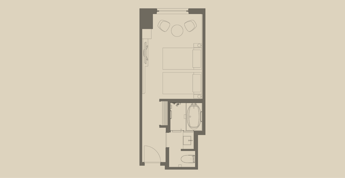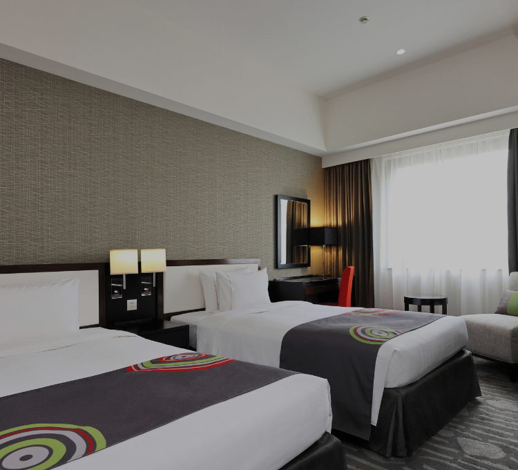 広めのツインルーム(25㎡以上)を中心とした客室構成で、ゆとりある空間を演出しました。