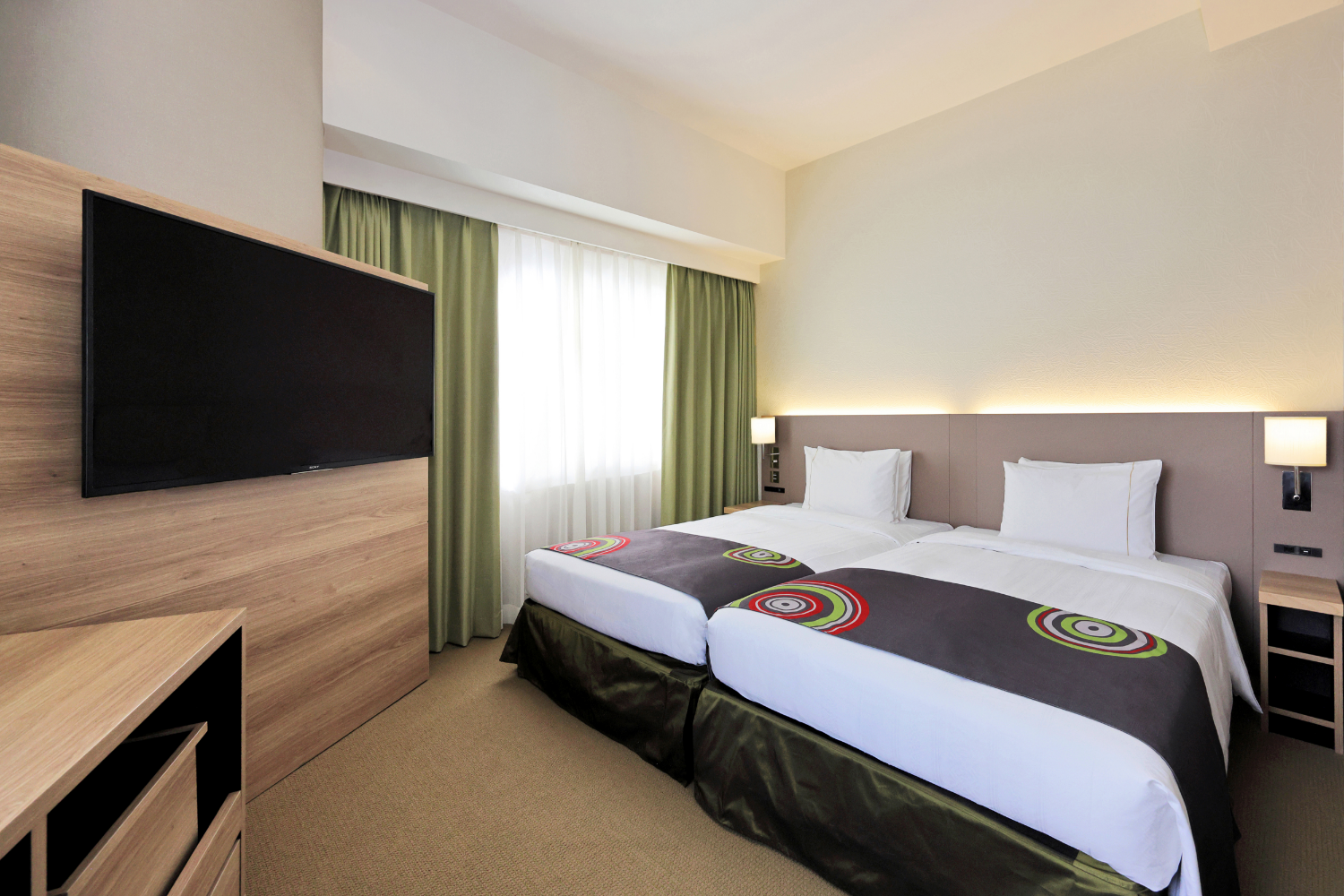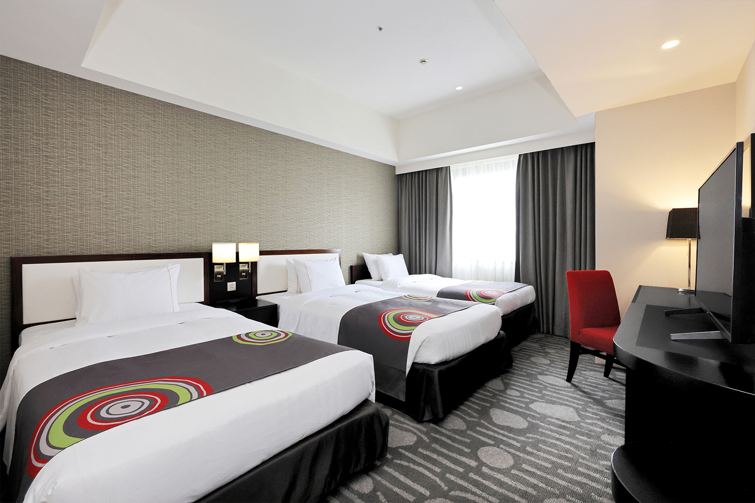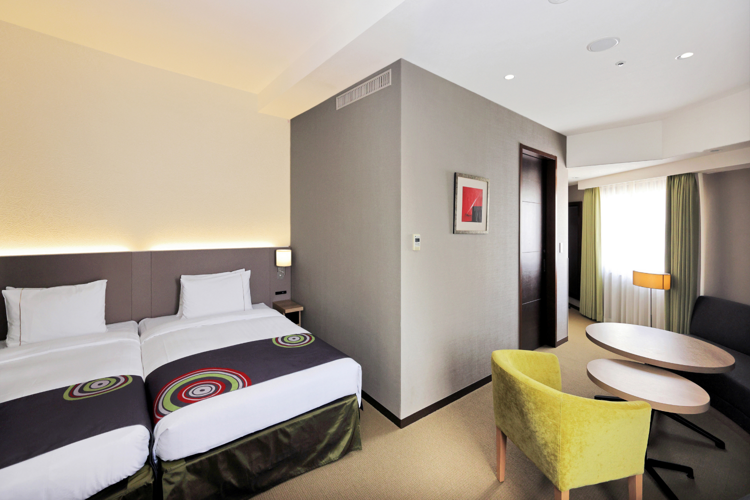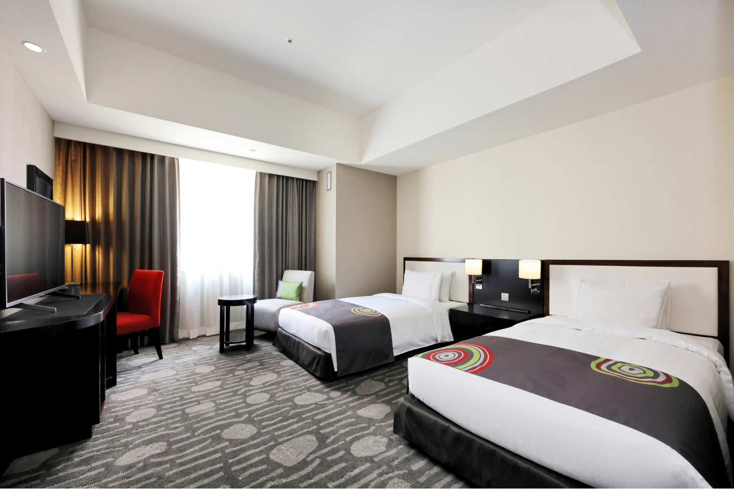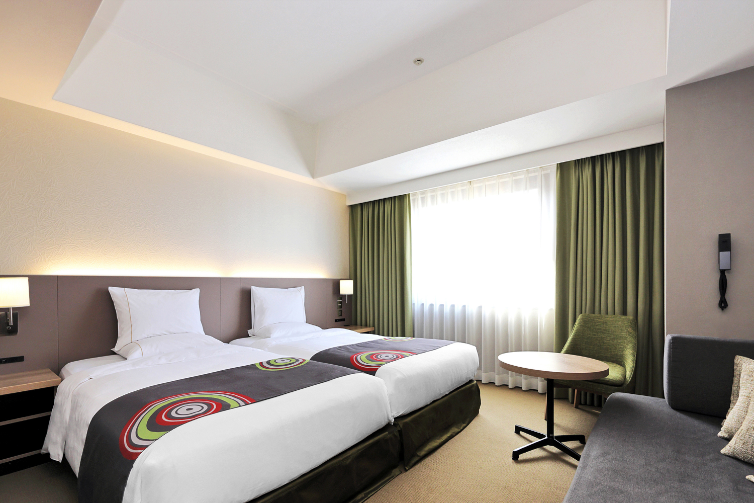 広めのツインルーム(25㎡以上)を中心とした客室構成で、ゆとりある空間を演出しました。