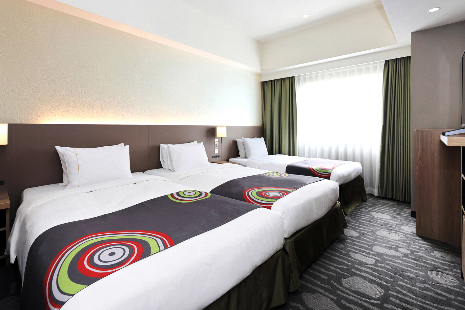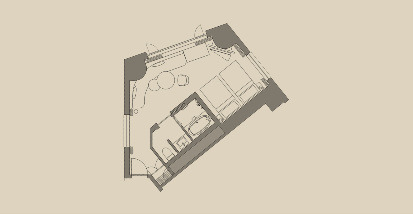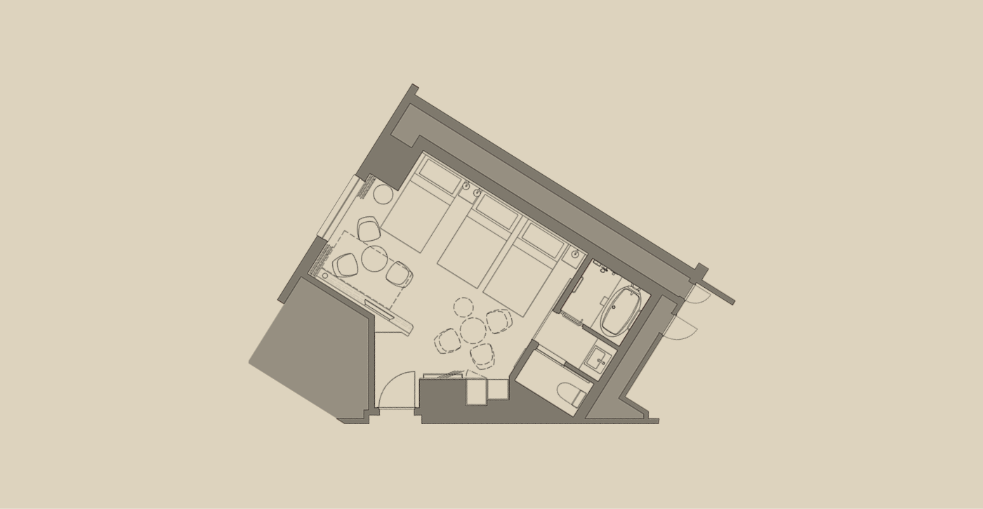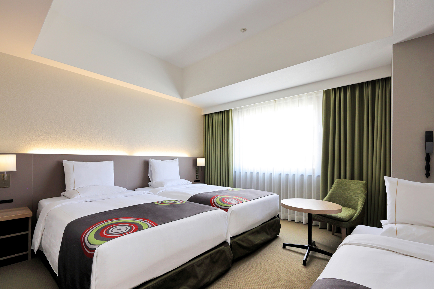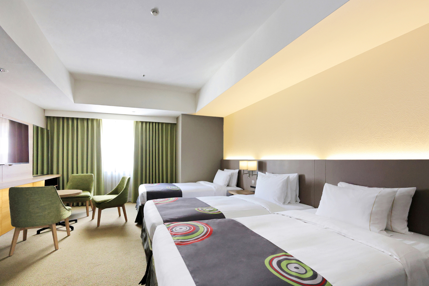 広めのツインルーム(25㎡以上)を中心とした客室構成で、ゆとりある空間を演出しました。