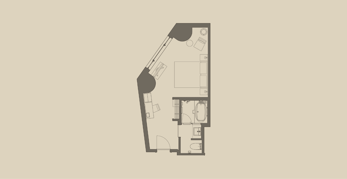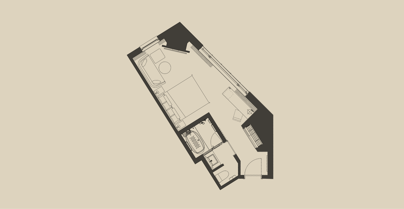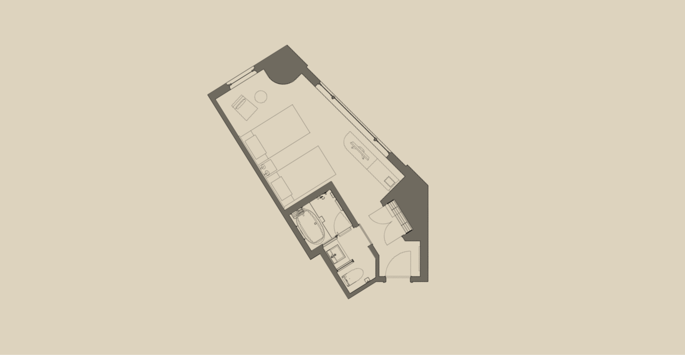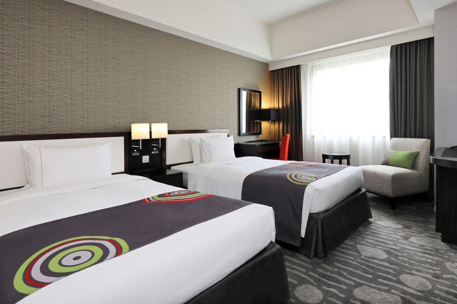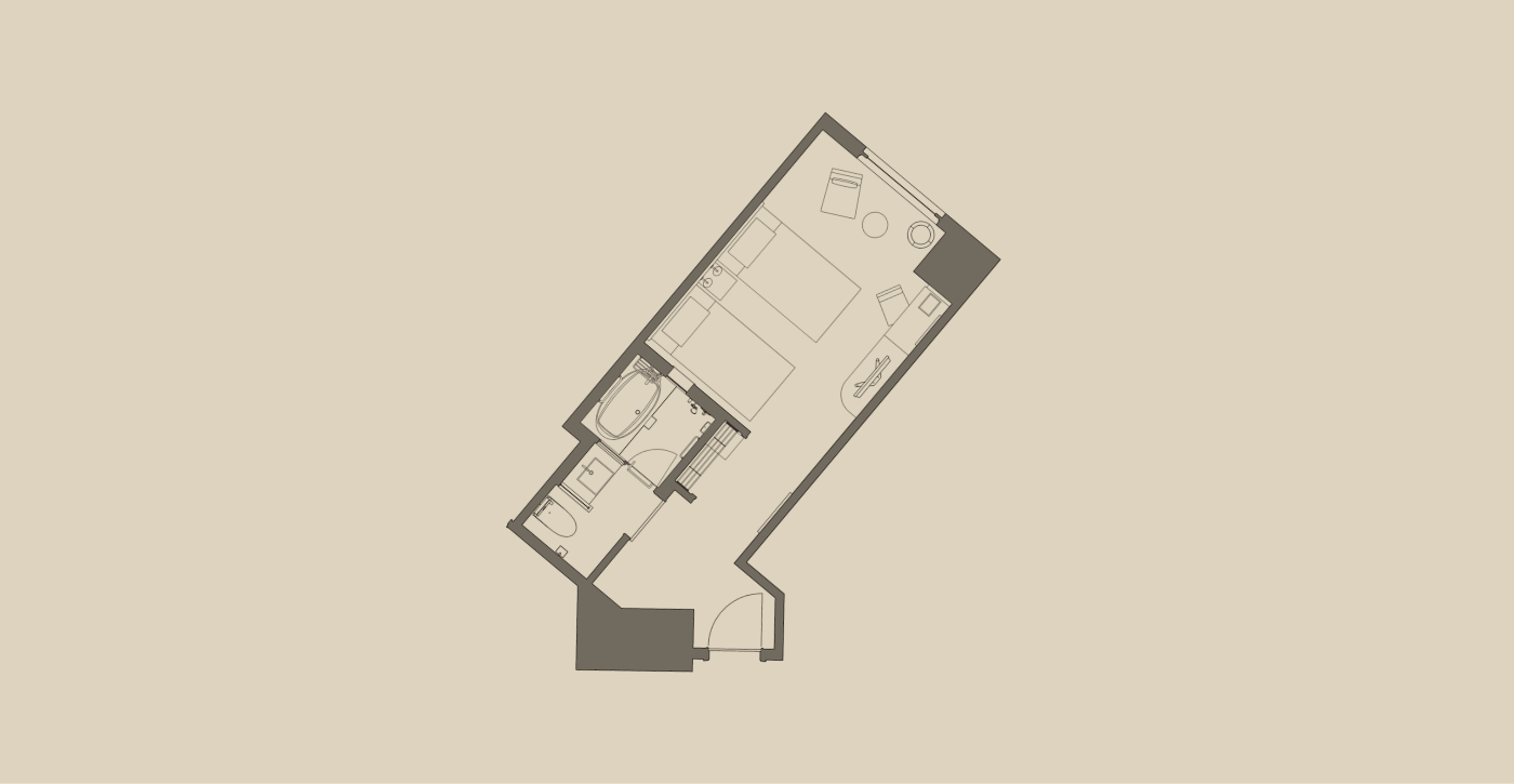 広めのツインルーム(25㎡以上)を中心とした客室構成で、ゆとりある空間を演出しました。
