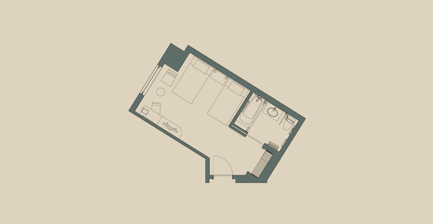 39.5㎡の広々としたツインルーム。