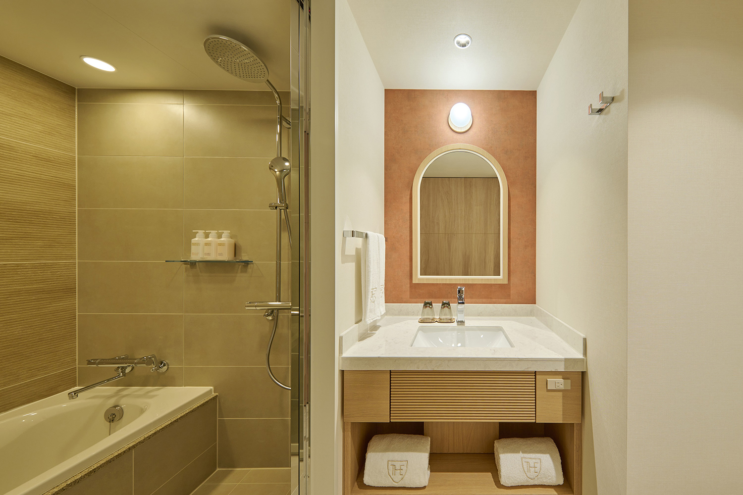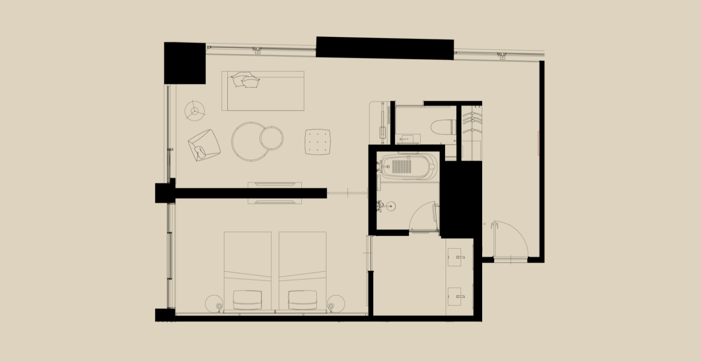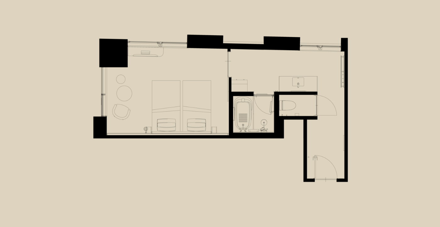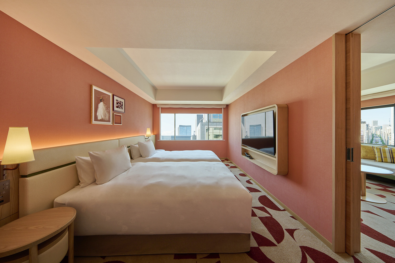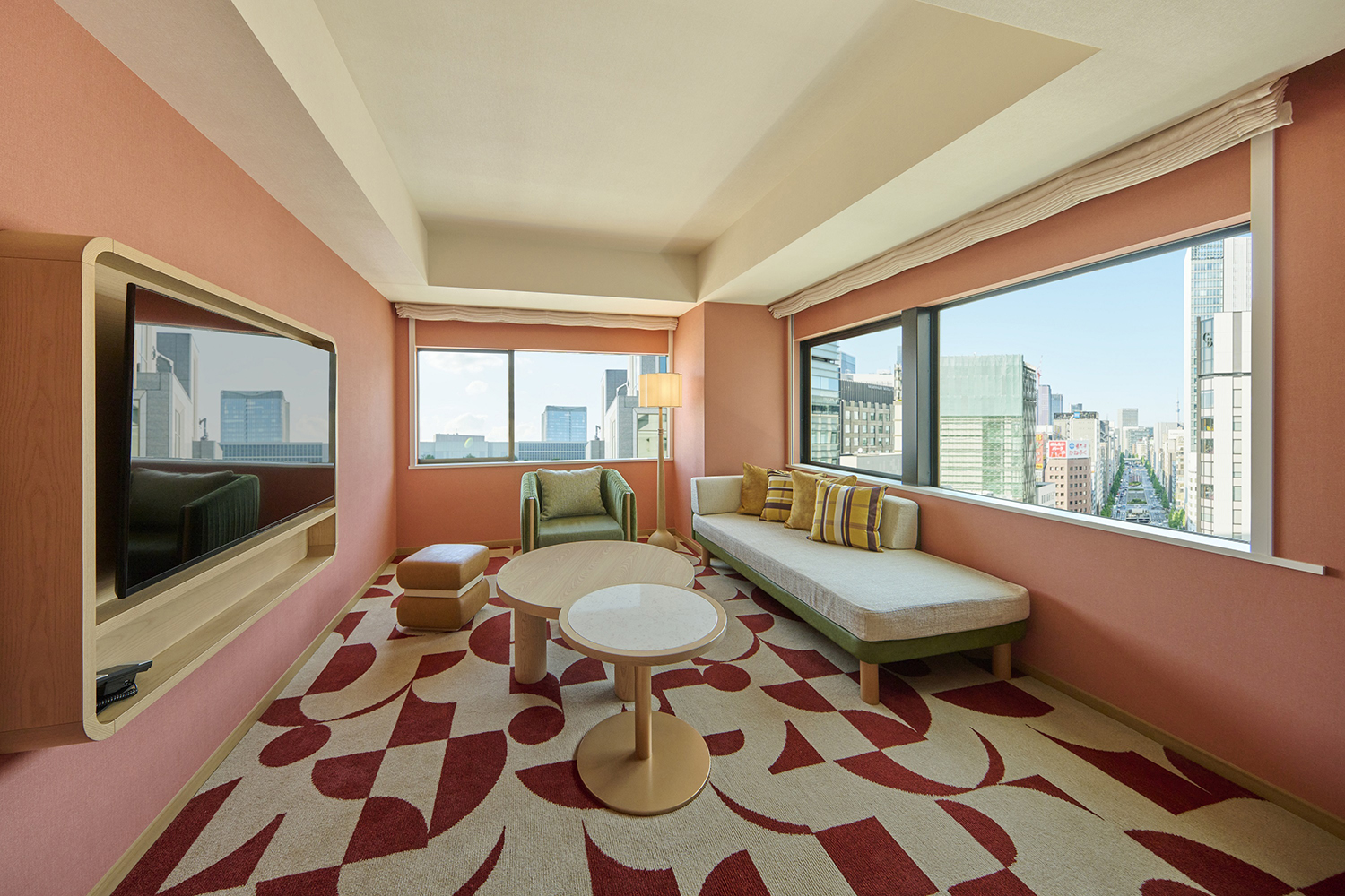 2方向に窓があり、銀座の街を眺められます。広めのバスルームや独立したトイレなど使い勝手が便利なお部屋です。