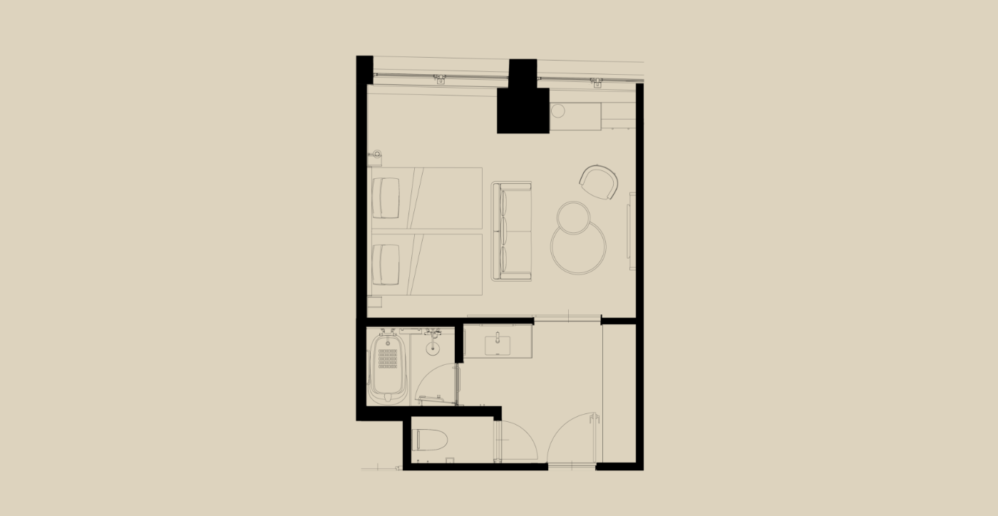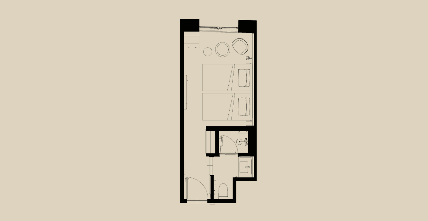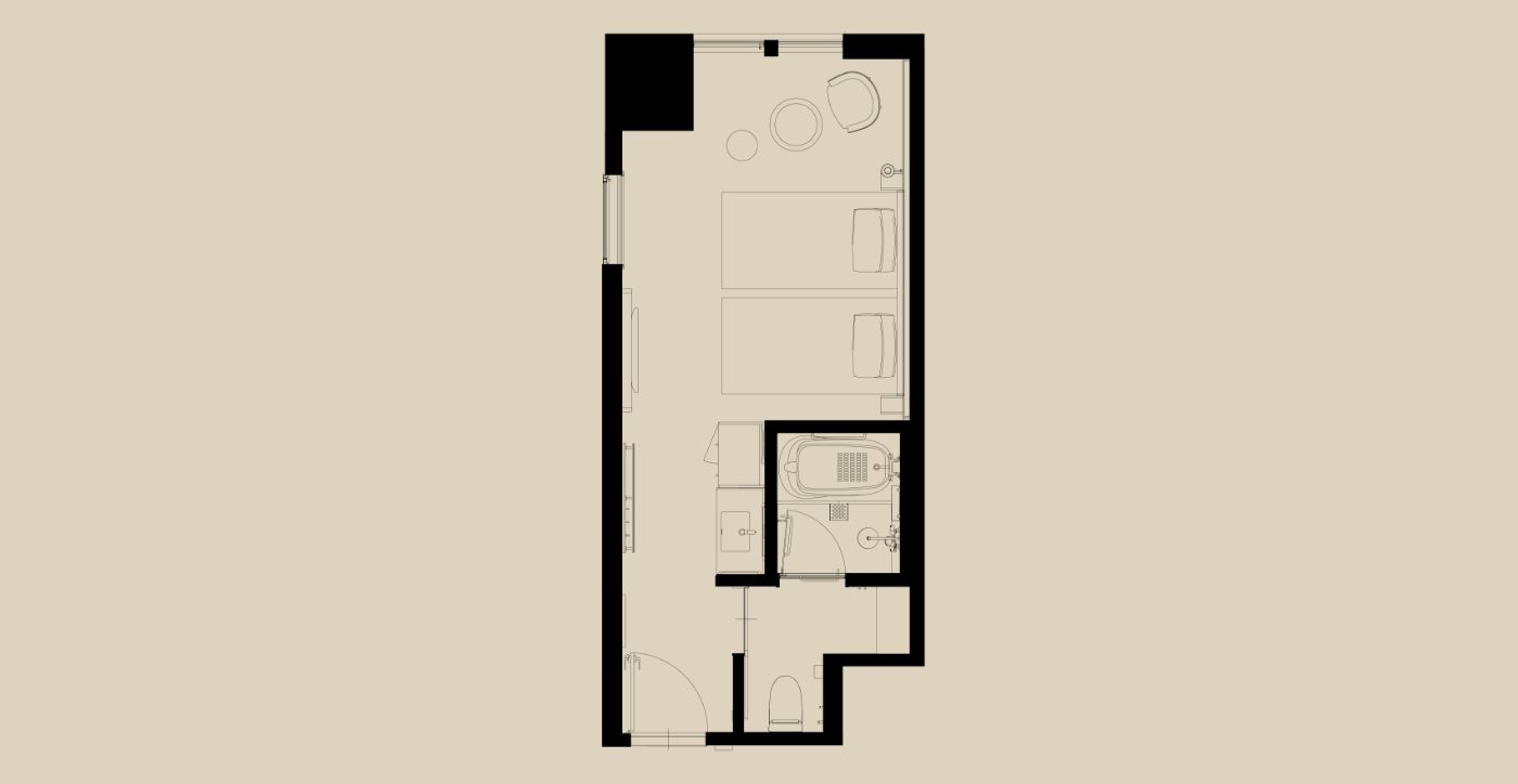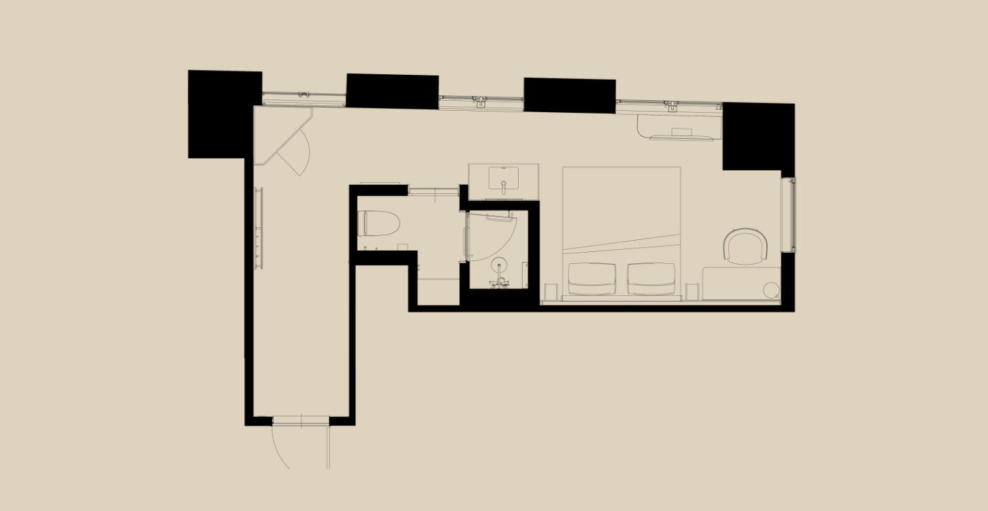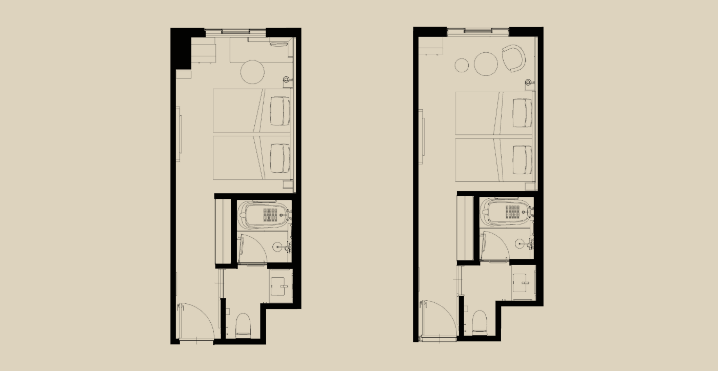 2方向に窓があり、銀座の街を眺められます。広めのバスルームや独立したトイレなど使い勝手が便利なお部屋です。