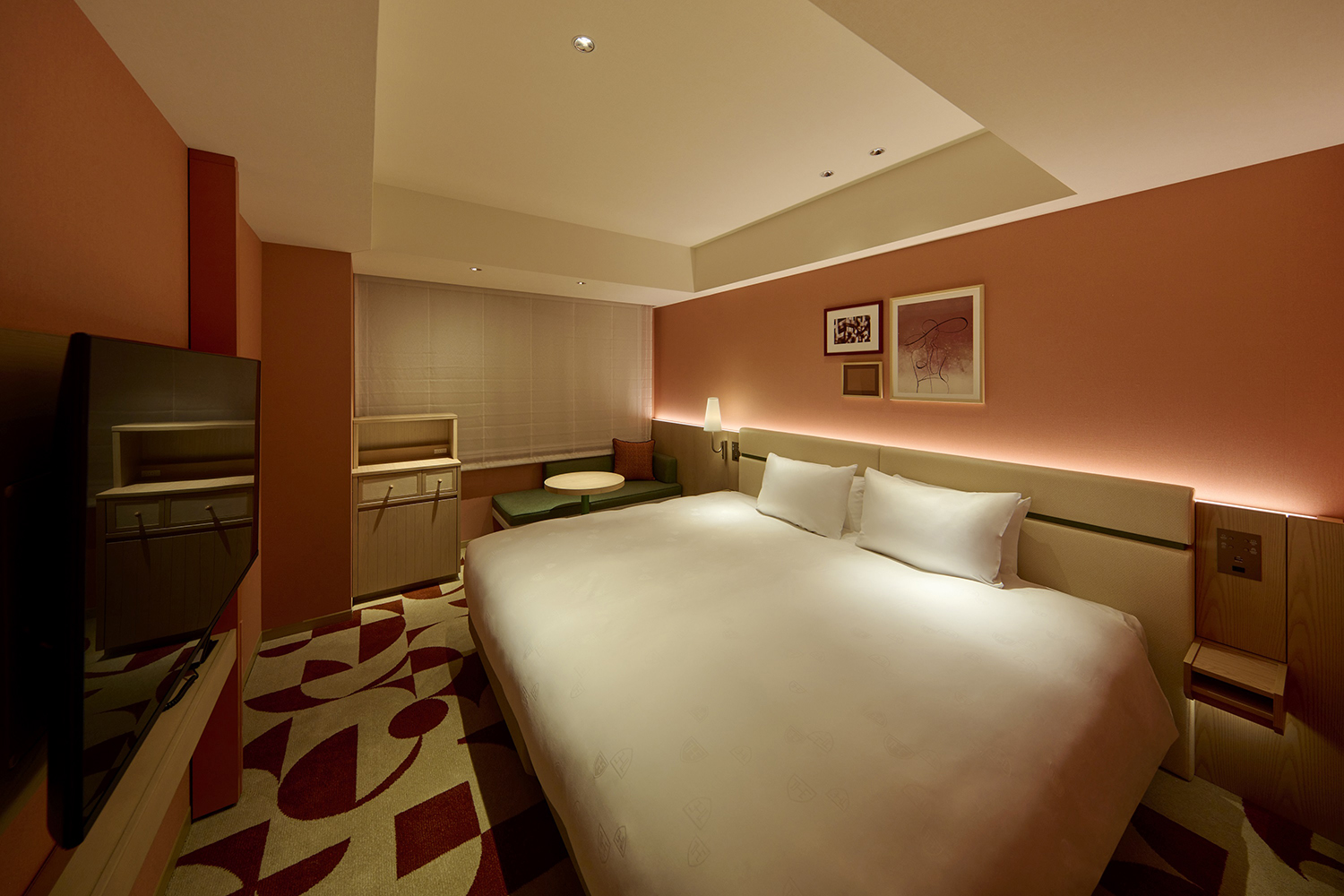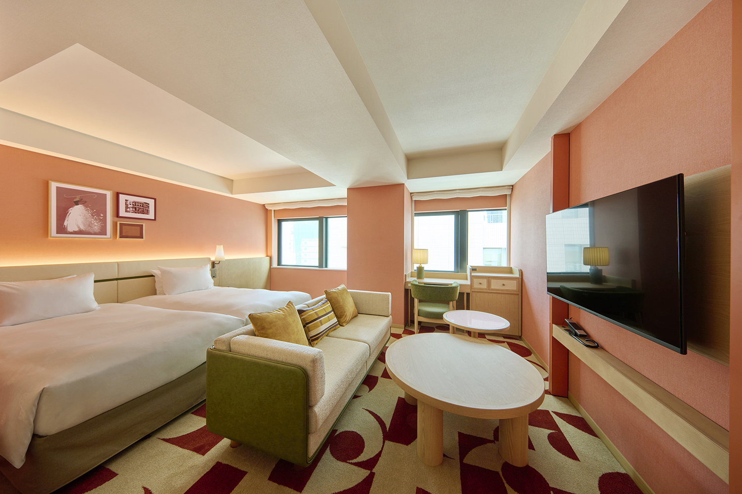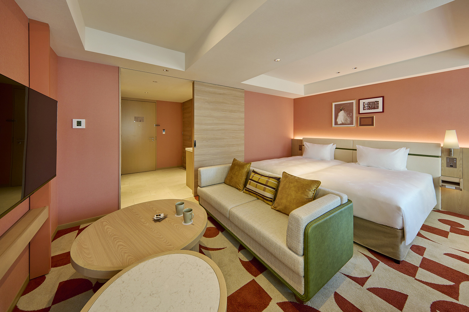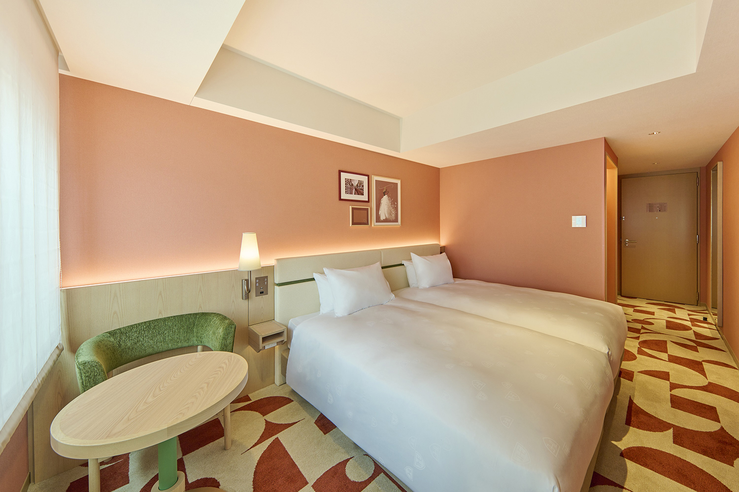 「モダンボーイ」と「モダンガール」達の可愛らしさの中に大胆でビビッドなデザインを取り入れた、機能性の高い客室。