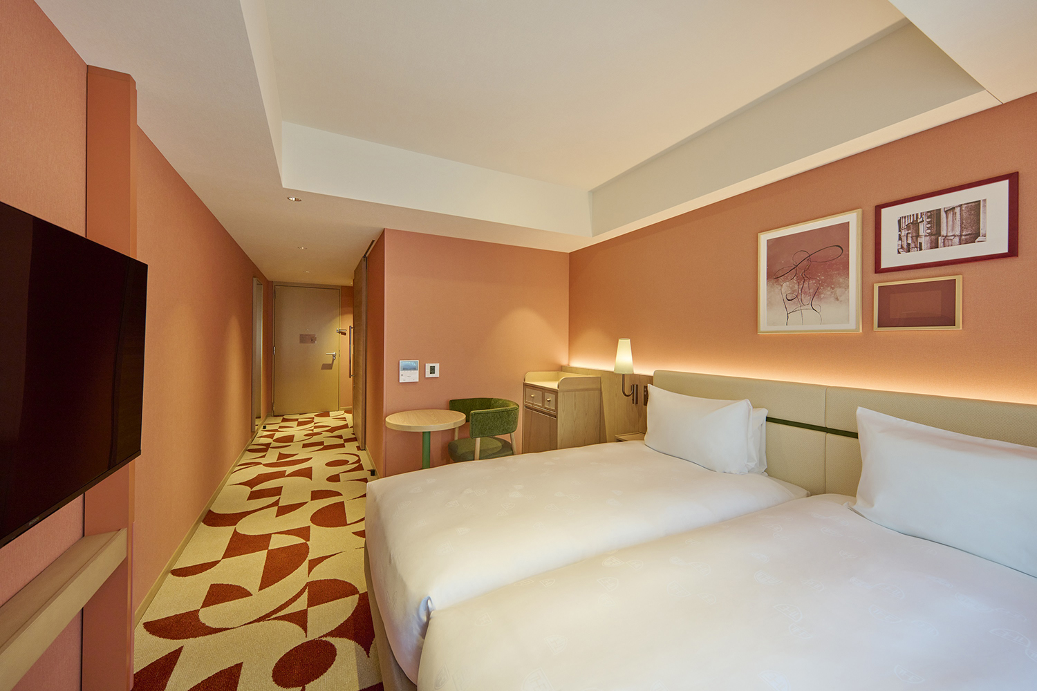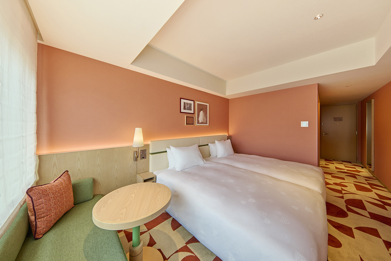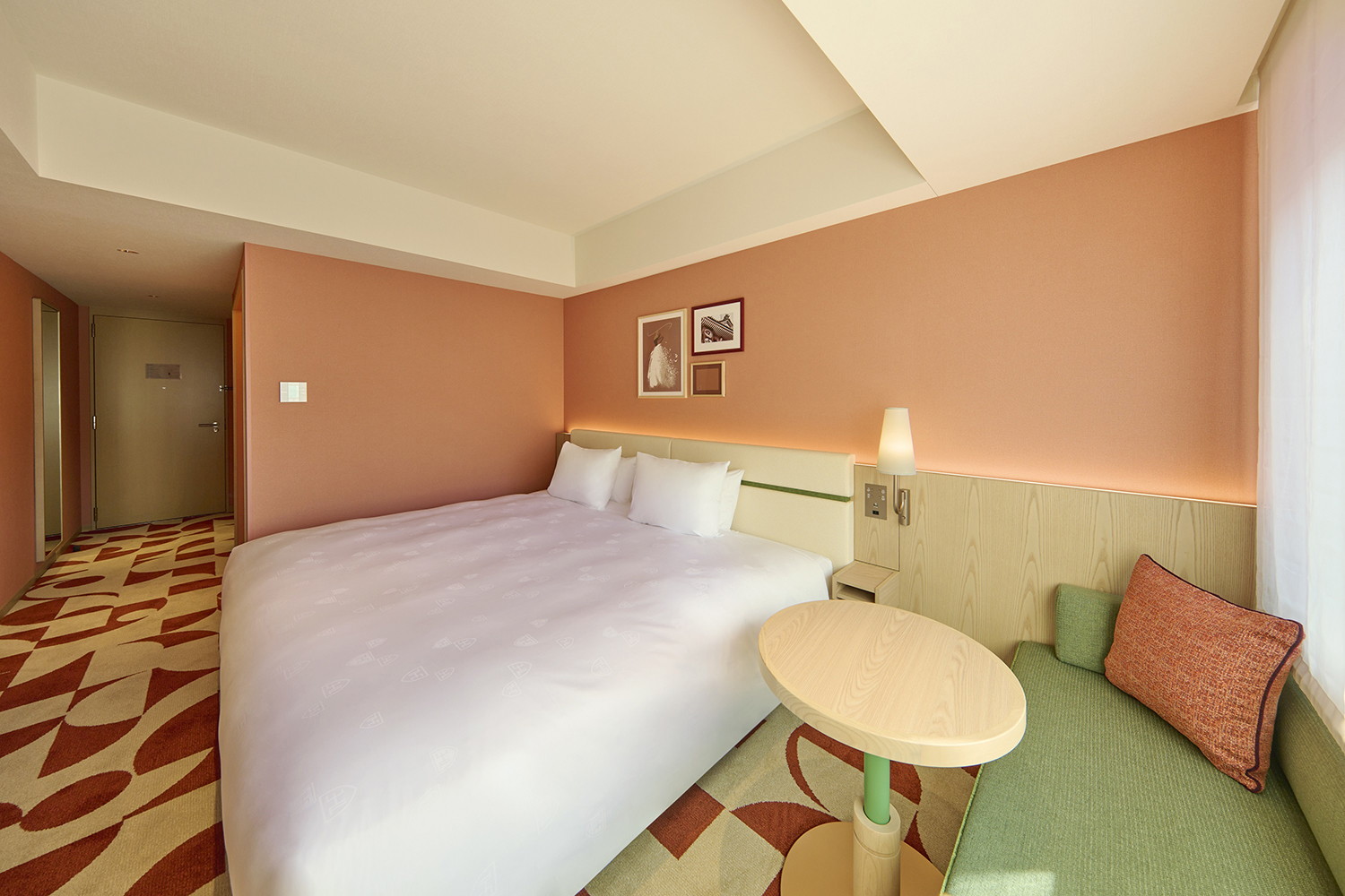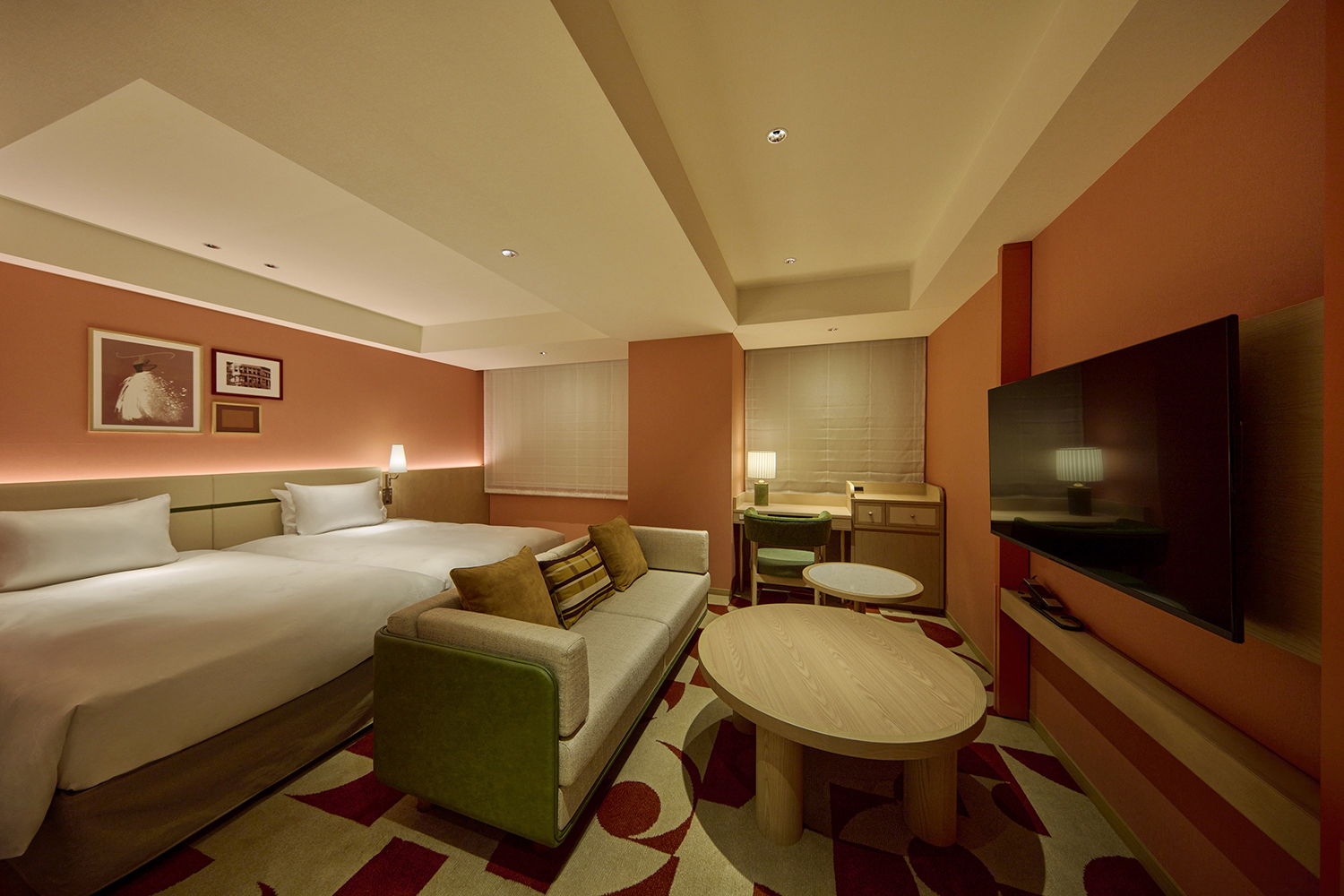 「モダンボーイ」と「モダンガール」達の可愛らしさの中に大胆でビビッドなデザインを取り入れた、機能性の高い客室。