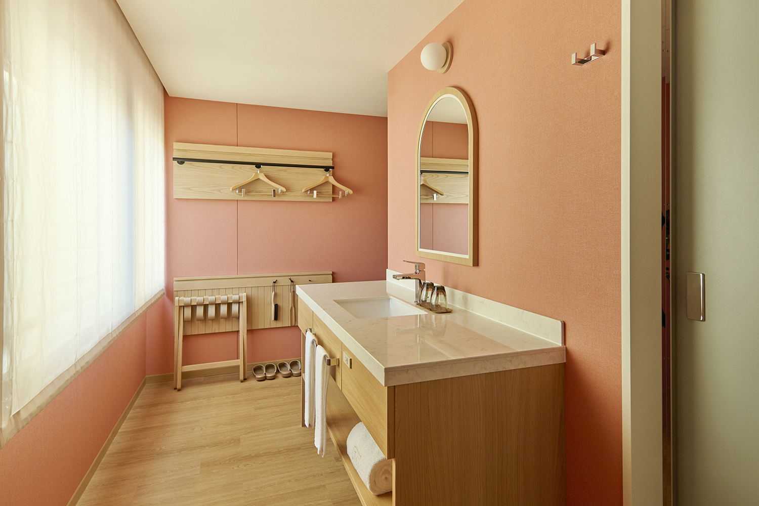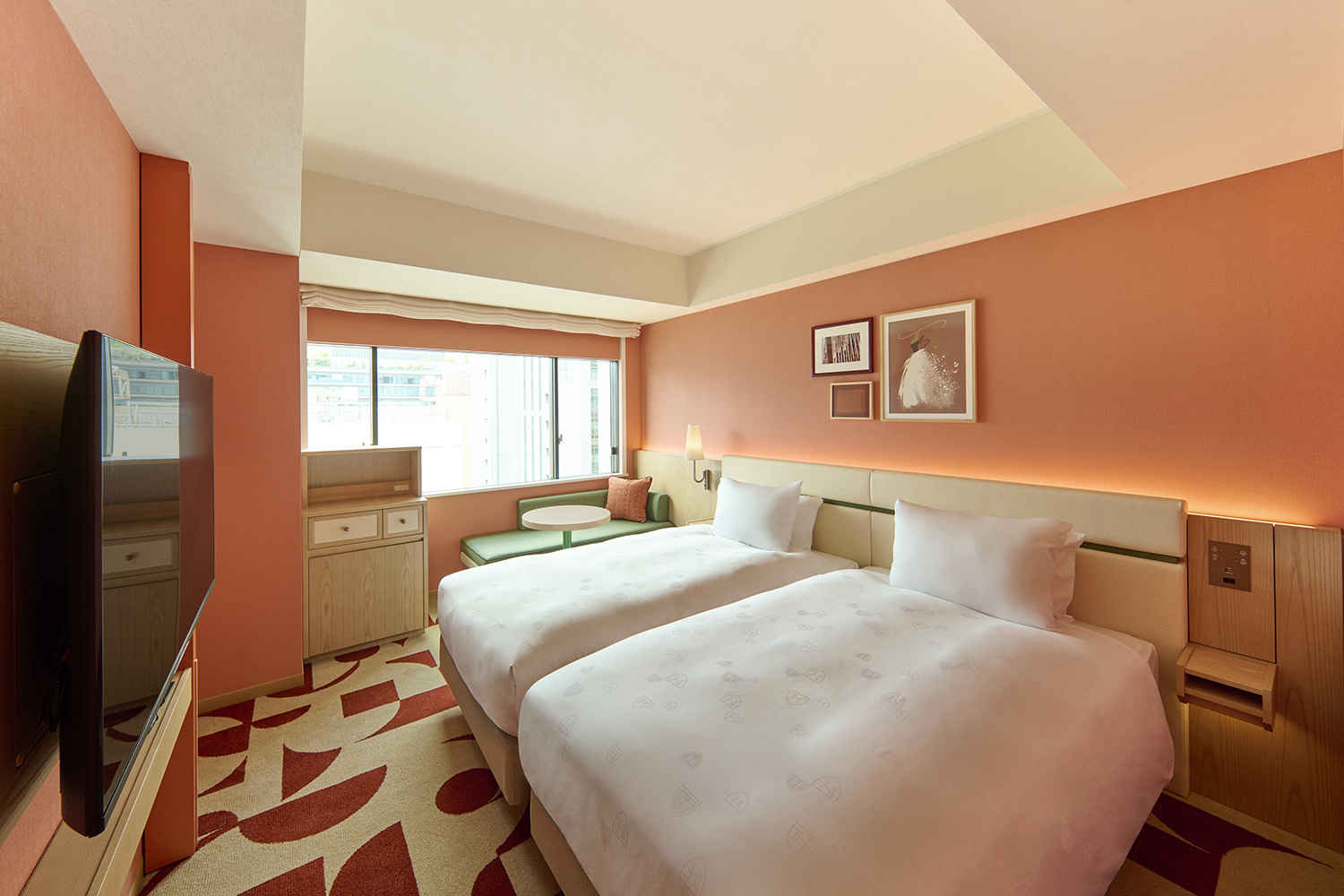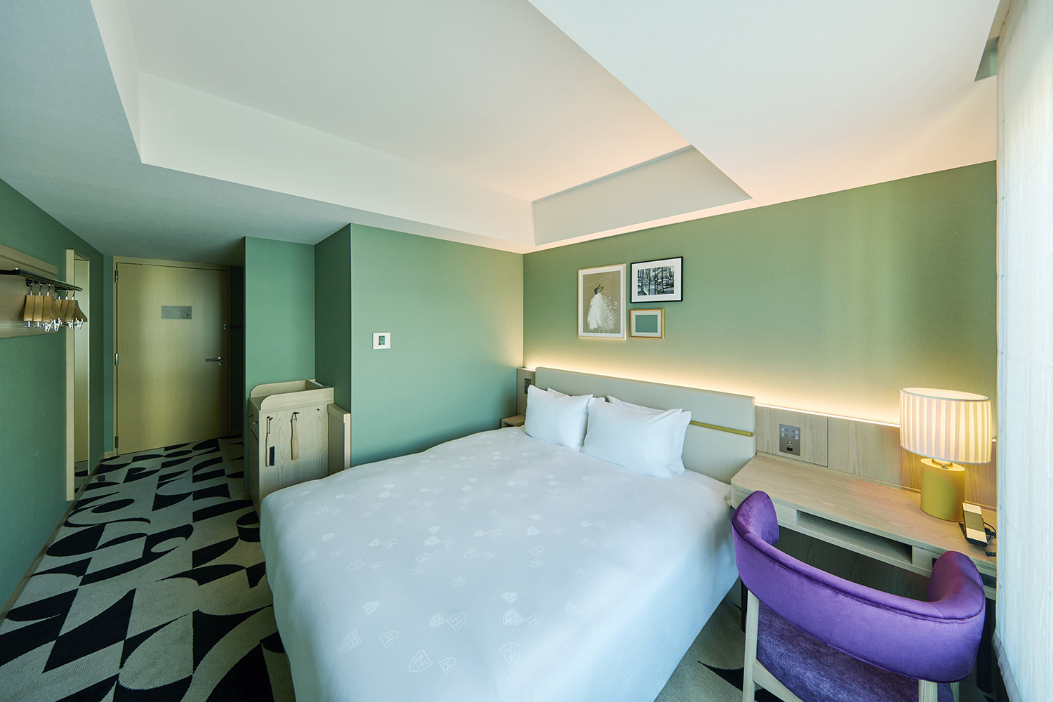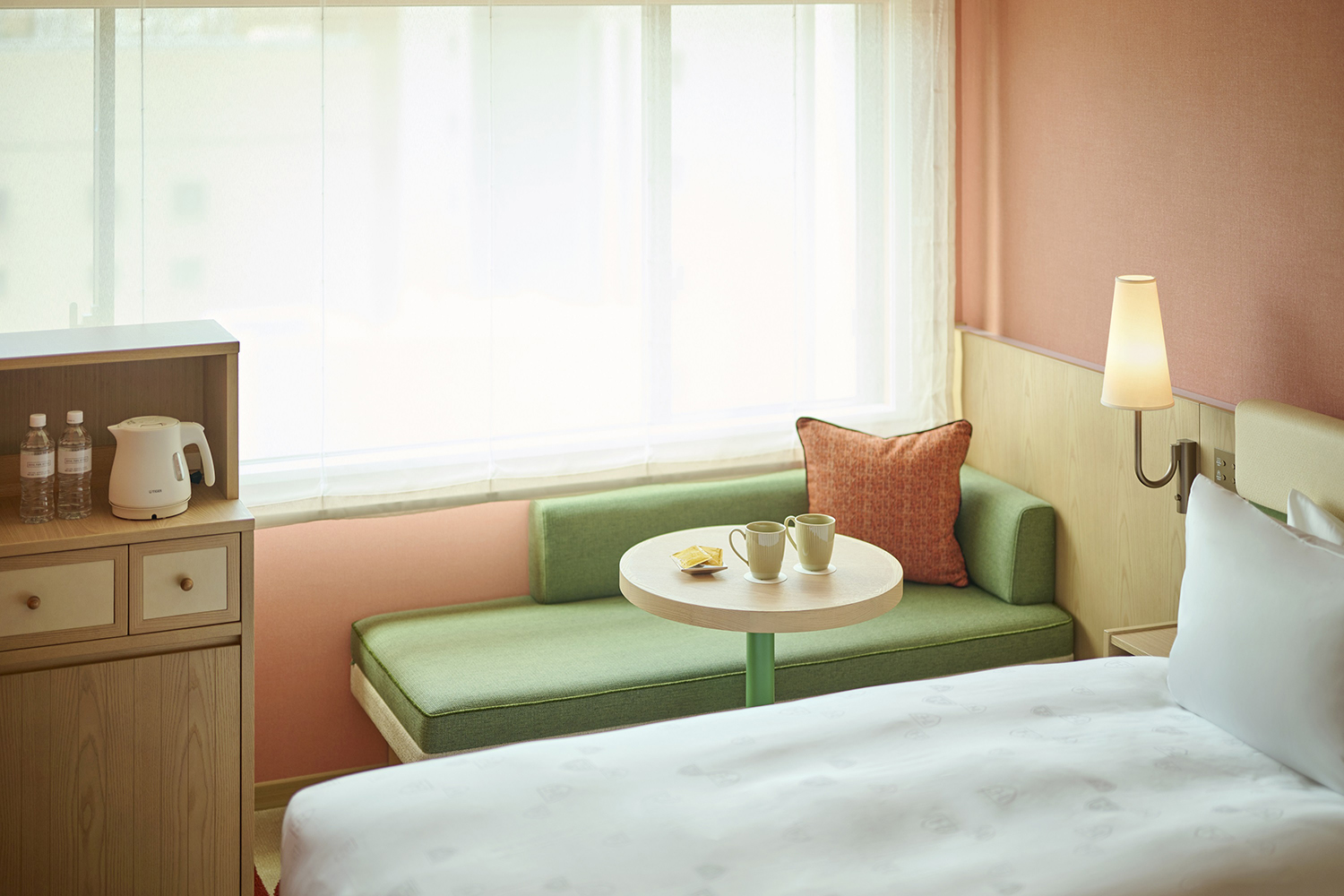 「モダンボーイ」と「モダンガール」達の可愛らしさの中に大胆でビビッドなデザインを取り入れた、機能性の高い客室。
