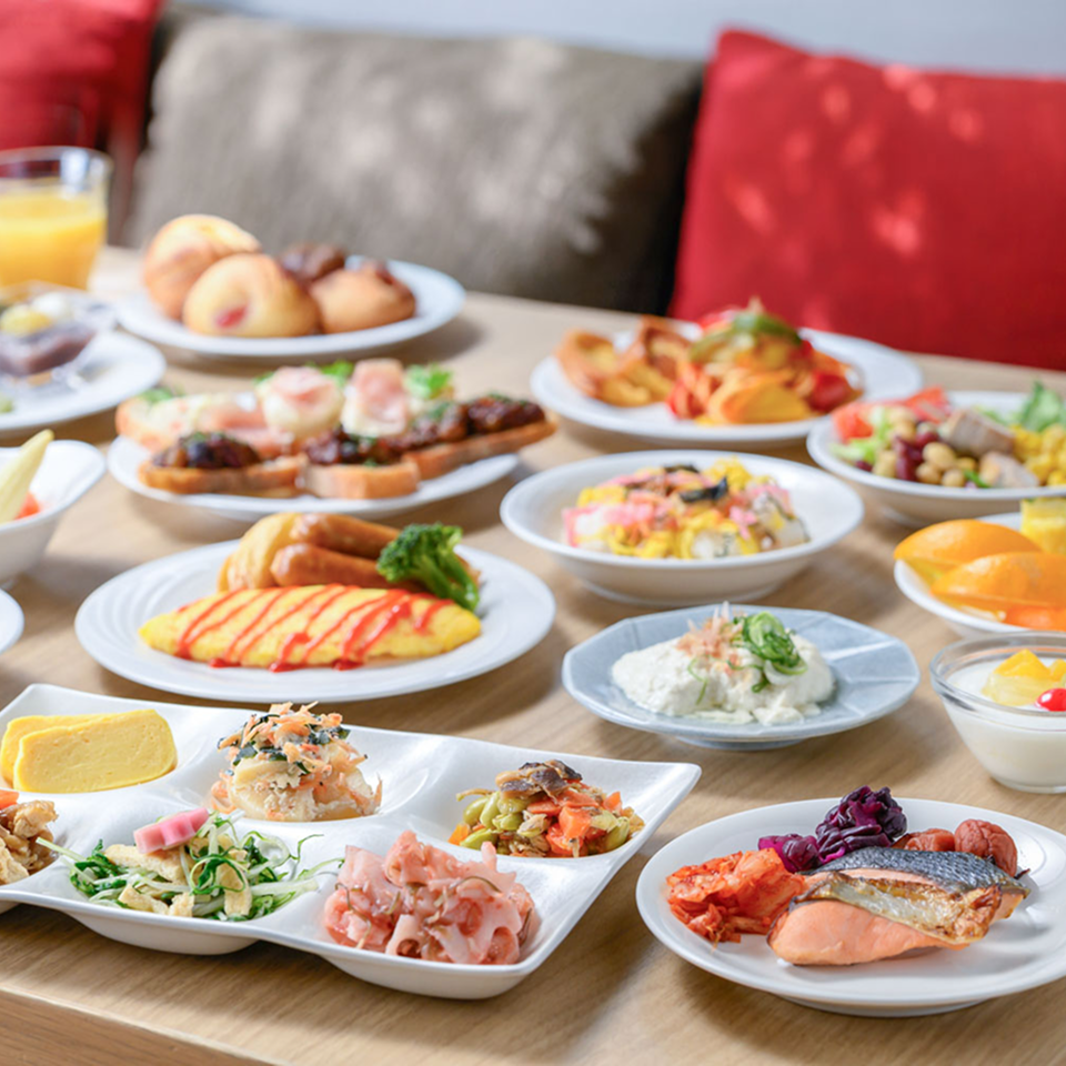 「新しい物語は美味しい朝食から」をコンセプトに、京都の歴史と進化を体感する朝食ブッフェをご用意。京都を感じる「おばんざい」や焼鯖のちらし寿司などに加えて、スクランブルエッグやベーコンとグリル野菜、カレーなど、和と洋を織り交ぜた多彩なメニューをお好きなだけお召しあがりください。