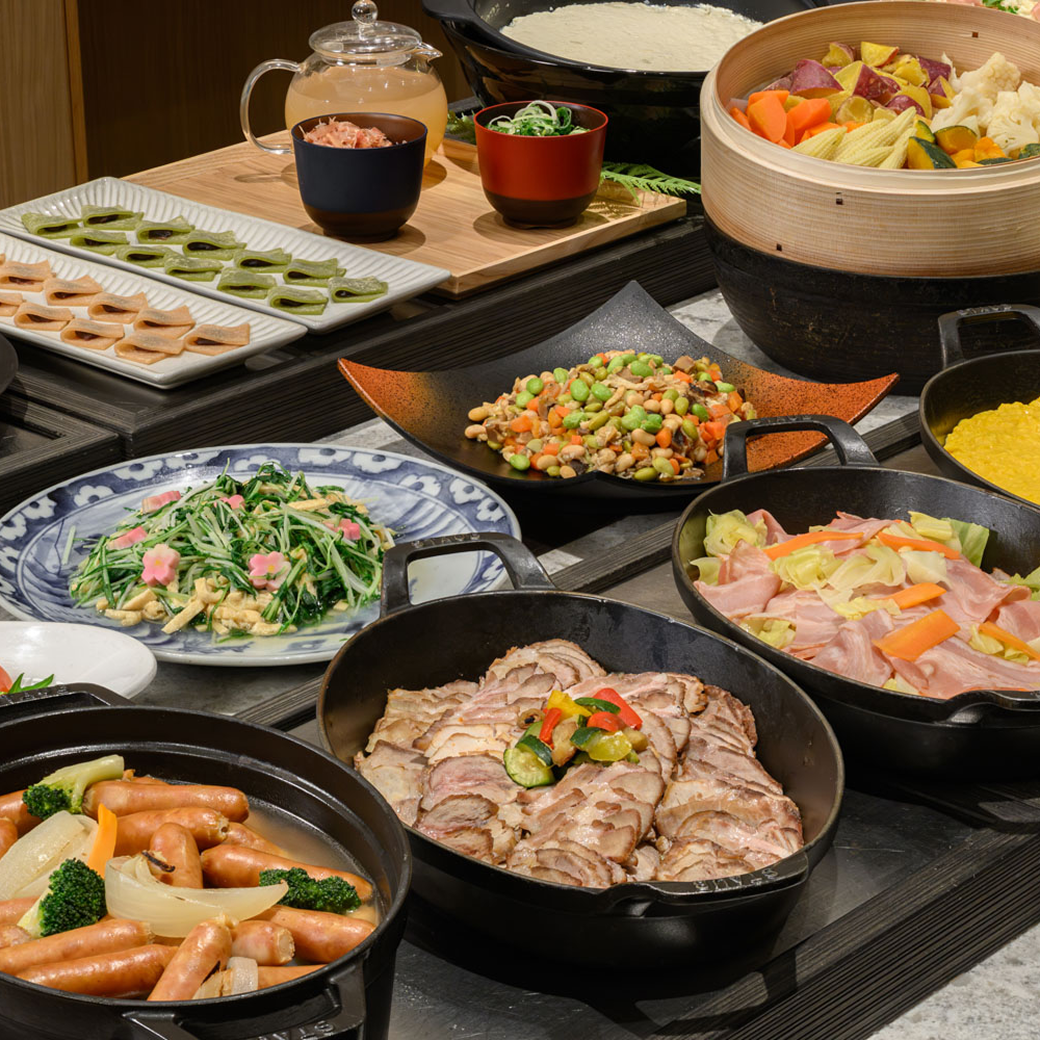 京都のおばんざいや、ライブキッチンで出来立てのお料理などをお楽しみいただける朝食ブッフェです。