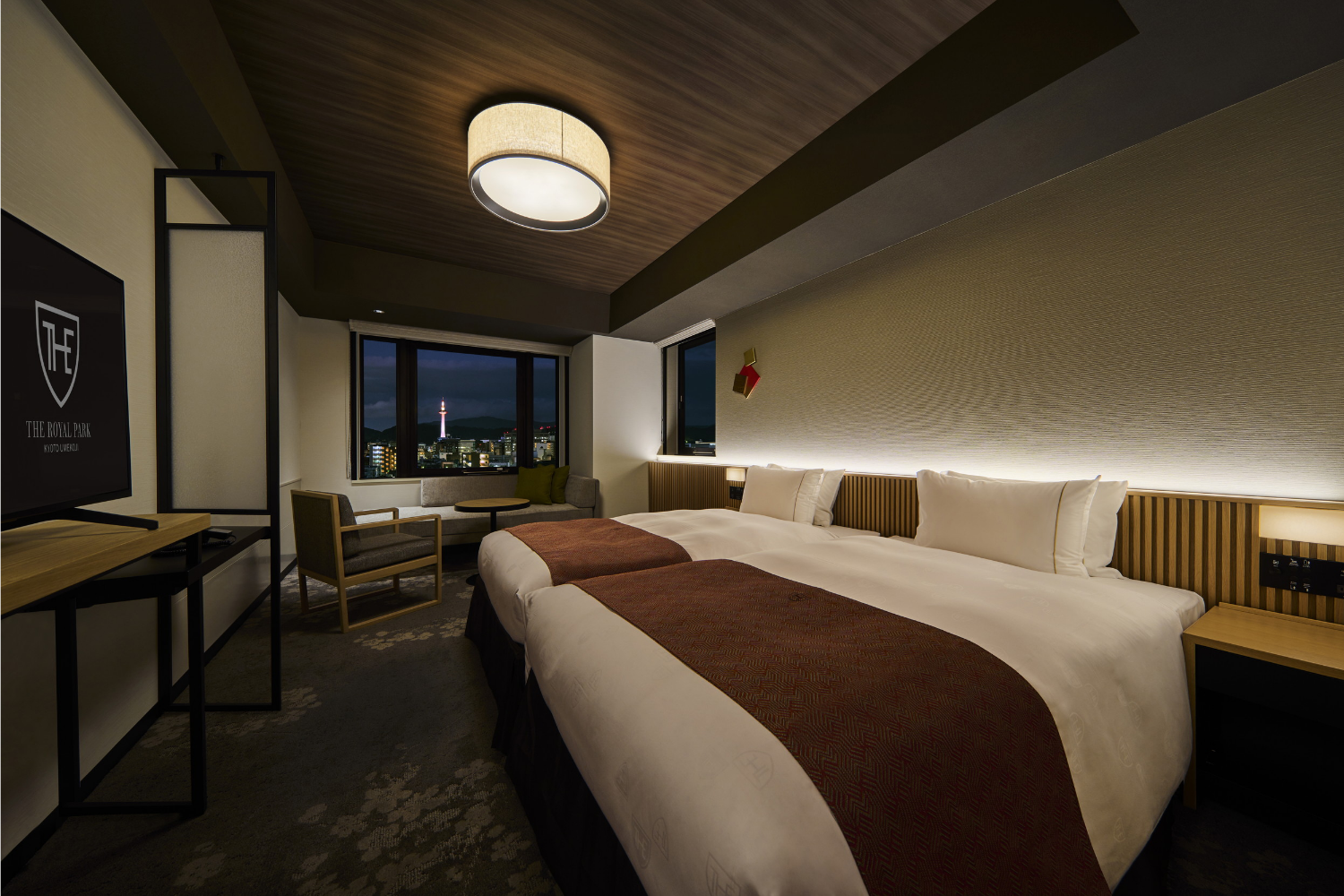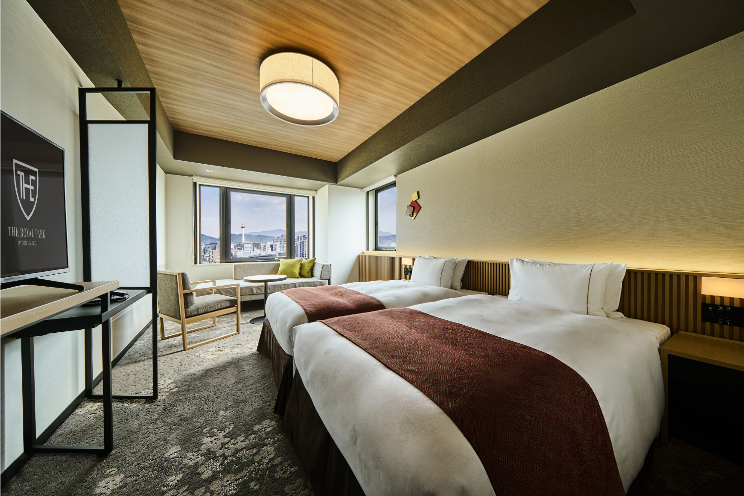 2面の窓に囲まれた開放感のあるツインタイプのお部屋です。