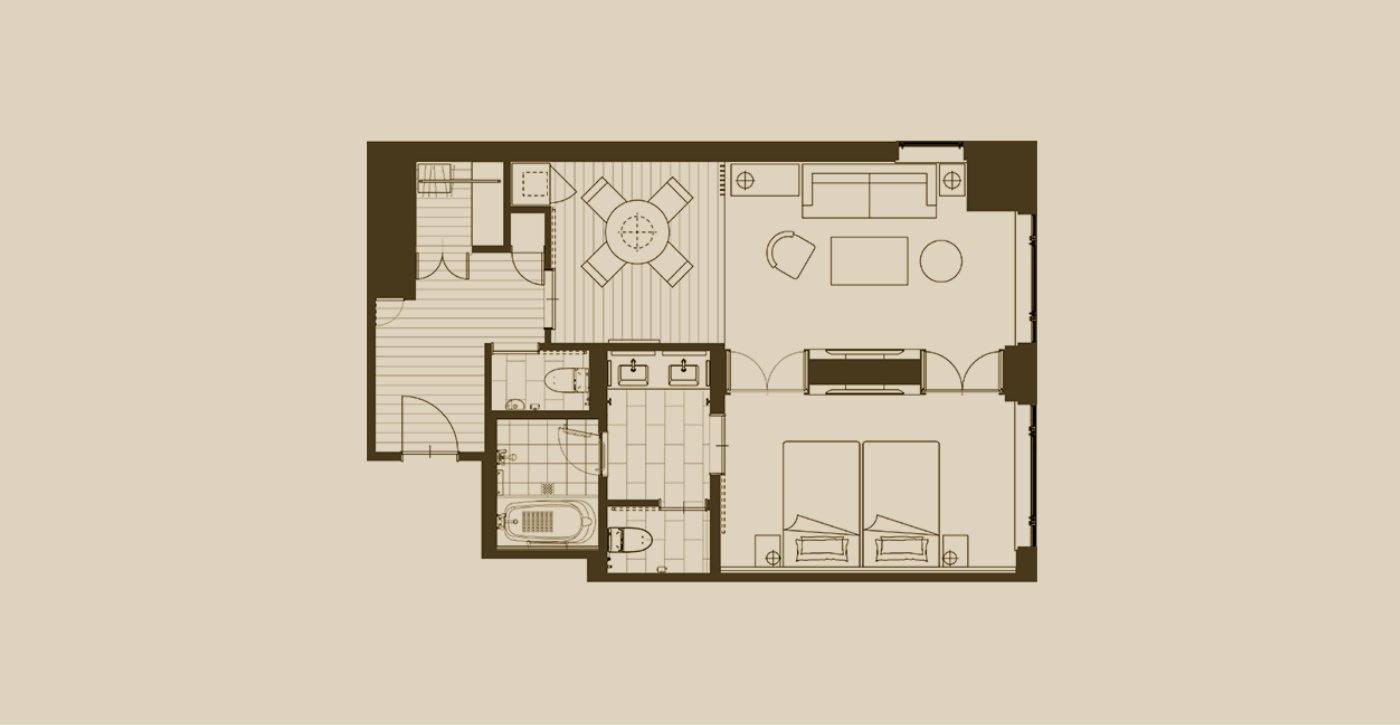 最上階のコーナーに位置するスイートは、最大4名様までご利用いただけます。