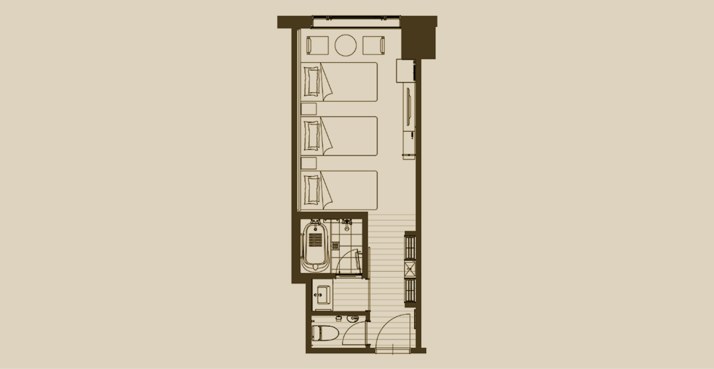 100cm×197cmのベッドを3台ご用意したトリプルルームです。