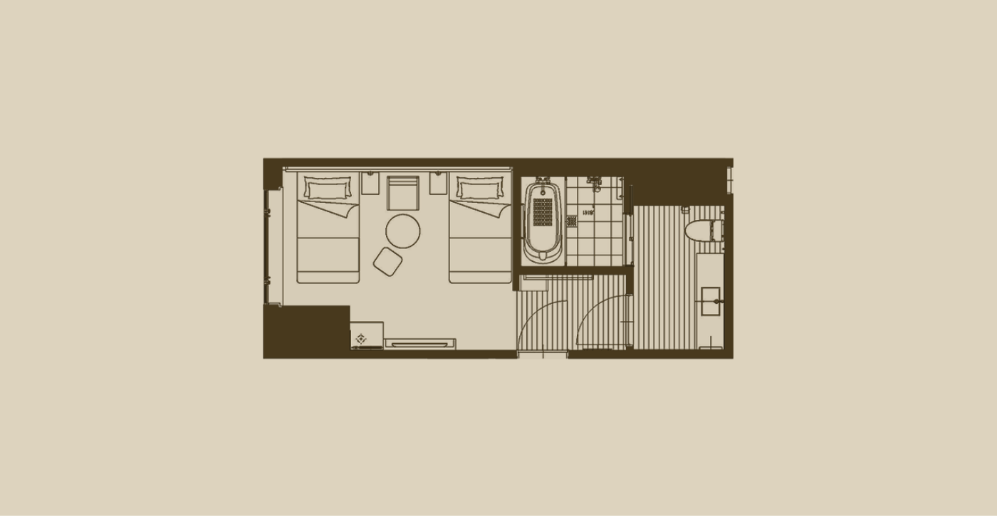 ゆったりとしたレイアウトのツインタイプのお部屋です。