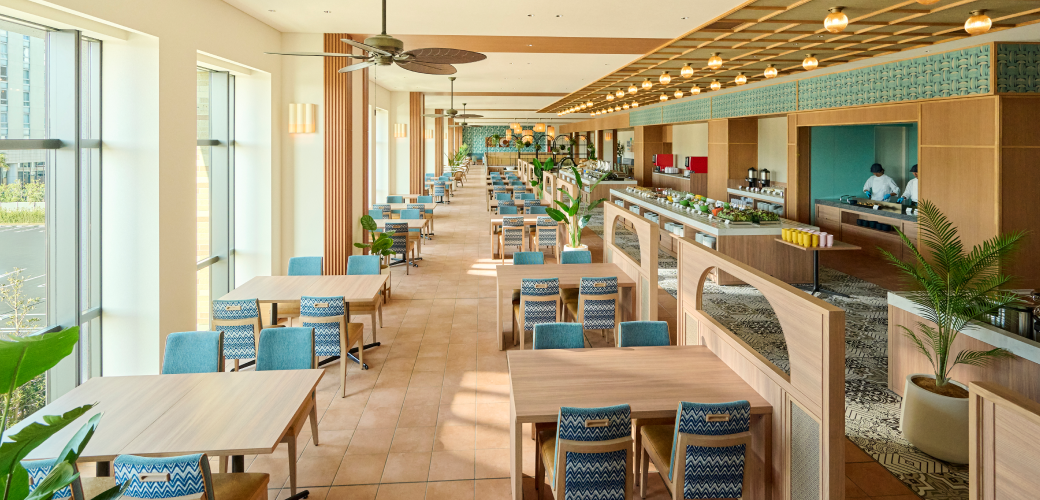 ソファ席も多く配した明るいリゾート空間で家族や仲間との会話も弾みます。