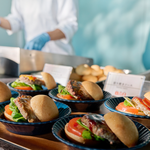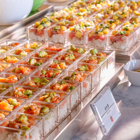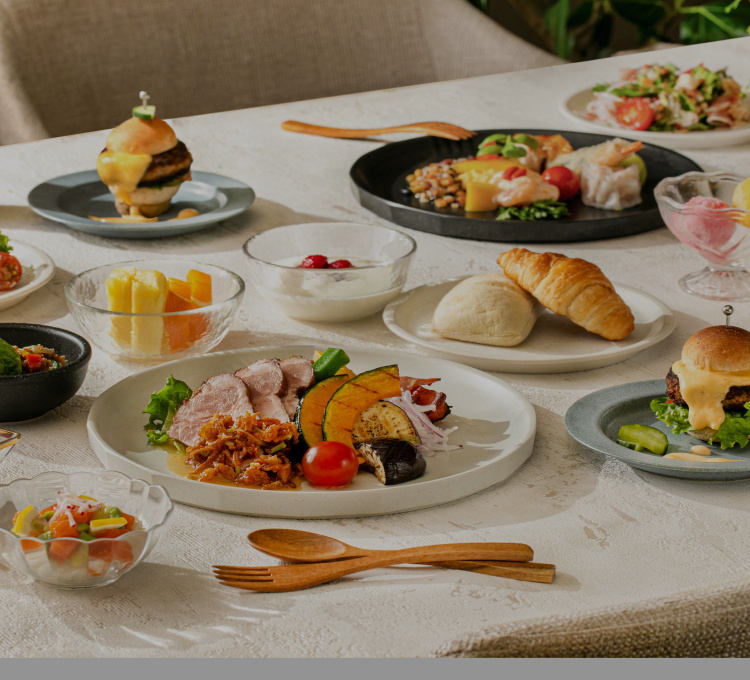 - グリルドビーフハンバーガー/アフリカチキン/グリルドポーク/千島汁蝦仁/点心/タイカレー春巻/ポテトサモサ/バラちらし寿司/ガパオ/ポキ丼/カレー/味噌汁/スープ/卵料理/サラダ/パン/グラノーラ/ヨーグルト/フルーツ/デザート/ドリンク各種他