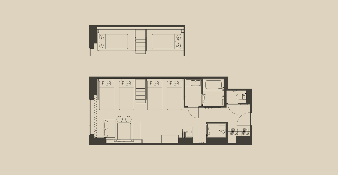 - 幅100cm×長さ196cm(2台)+ 幅90cm×長さ196cm(エキストラベッド)