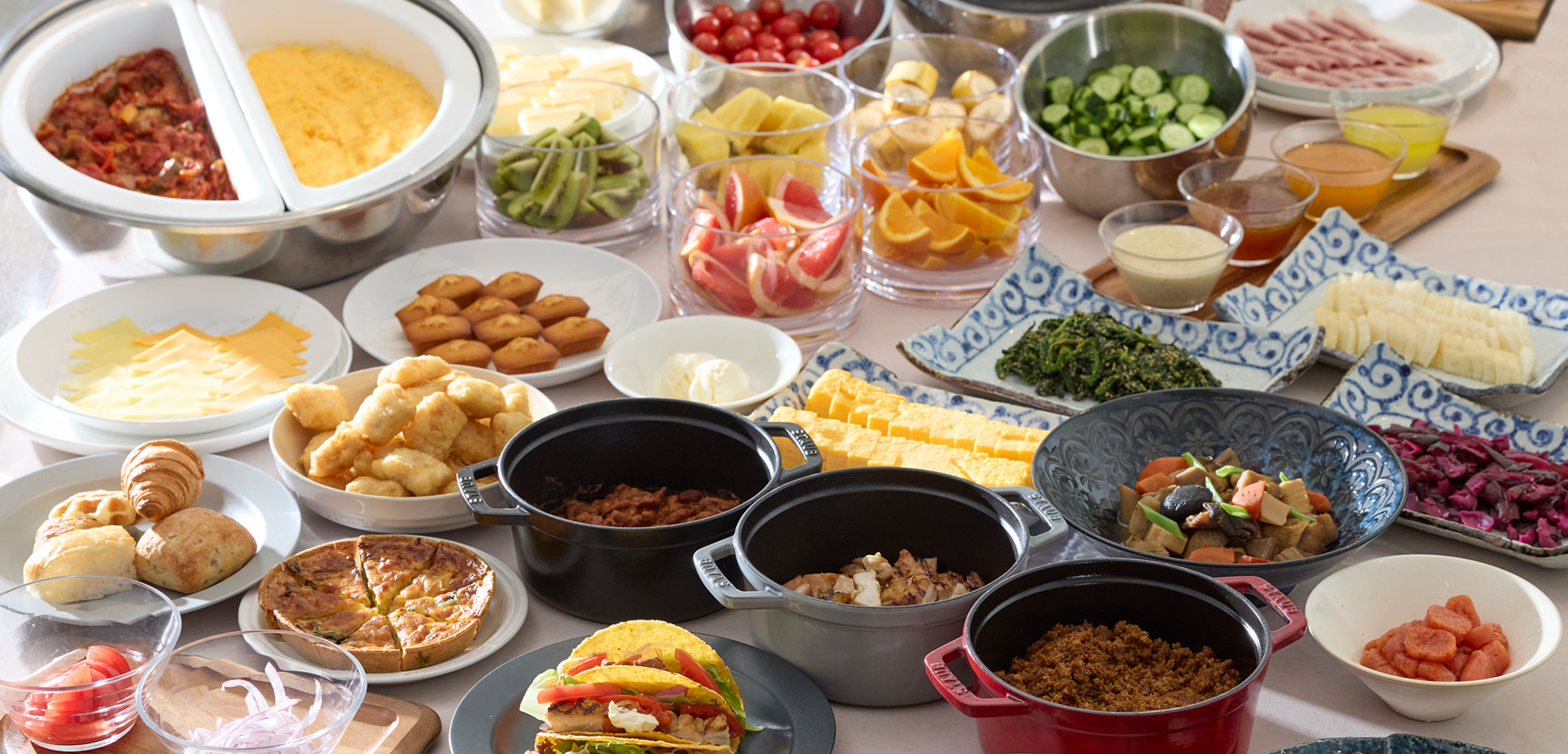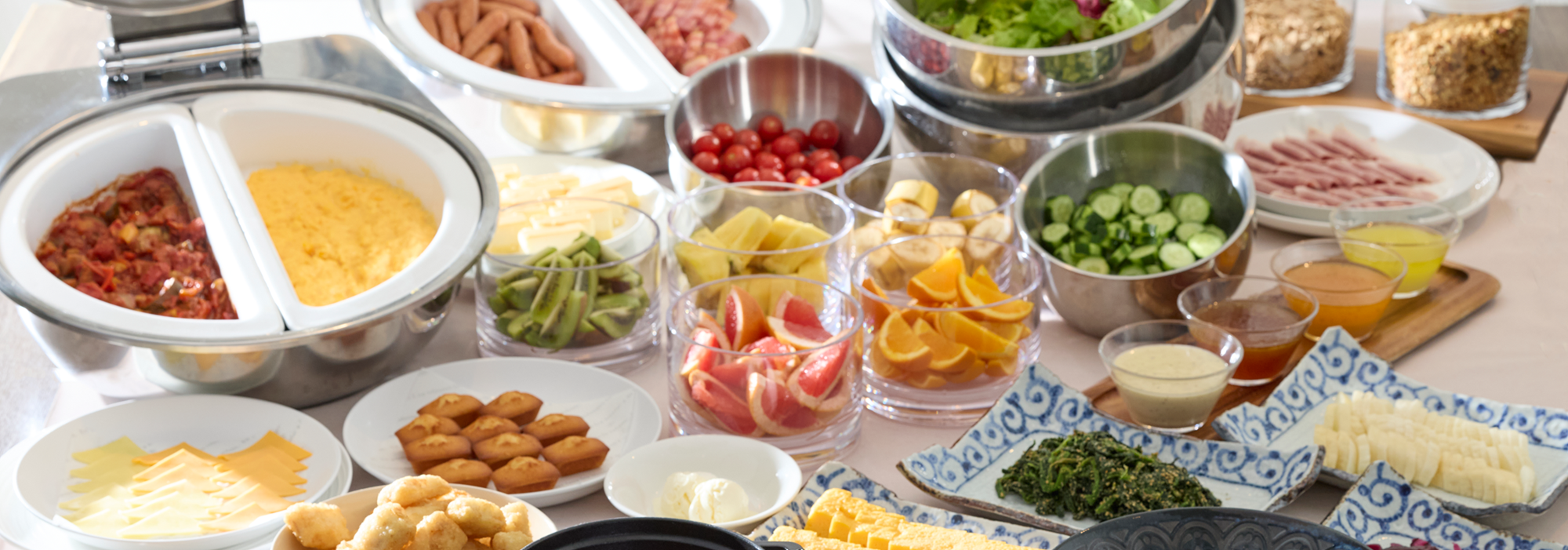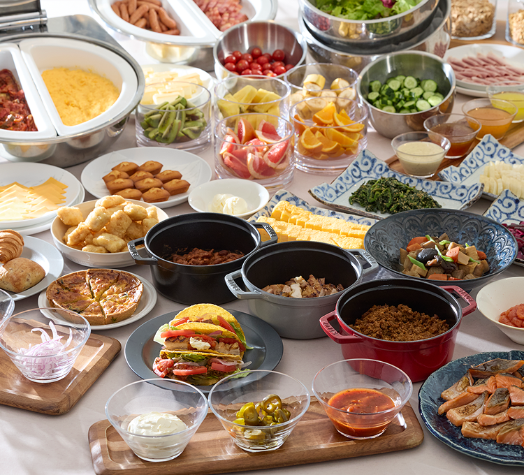 海外帰りに嬉しいお味噌汁なども揃えた和洋ブッフェ。お出かけ前にも美味しくエナジーチャージ。