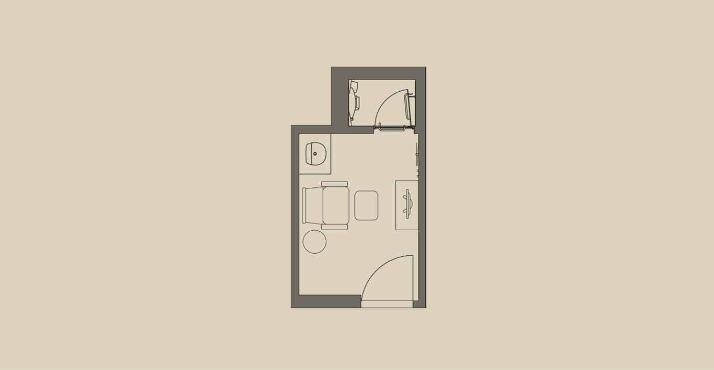 シャワーブース、ソファ、テレビを設置したお部屋です。ベッドはございません。